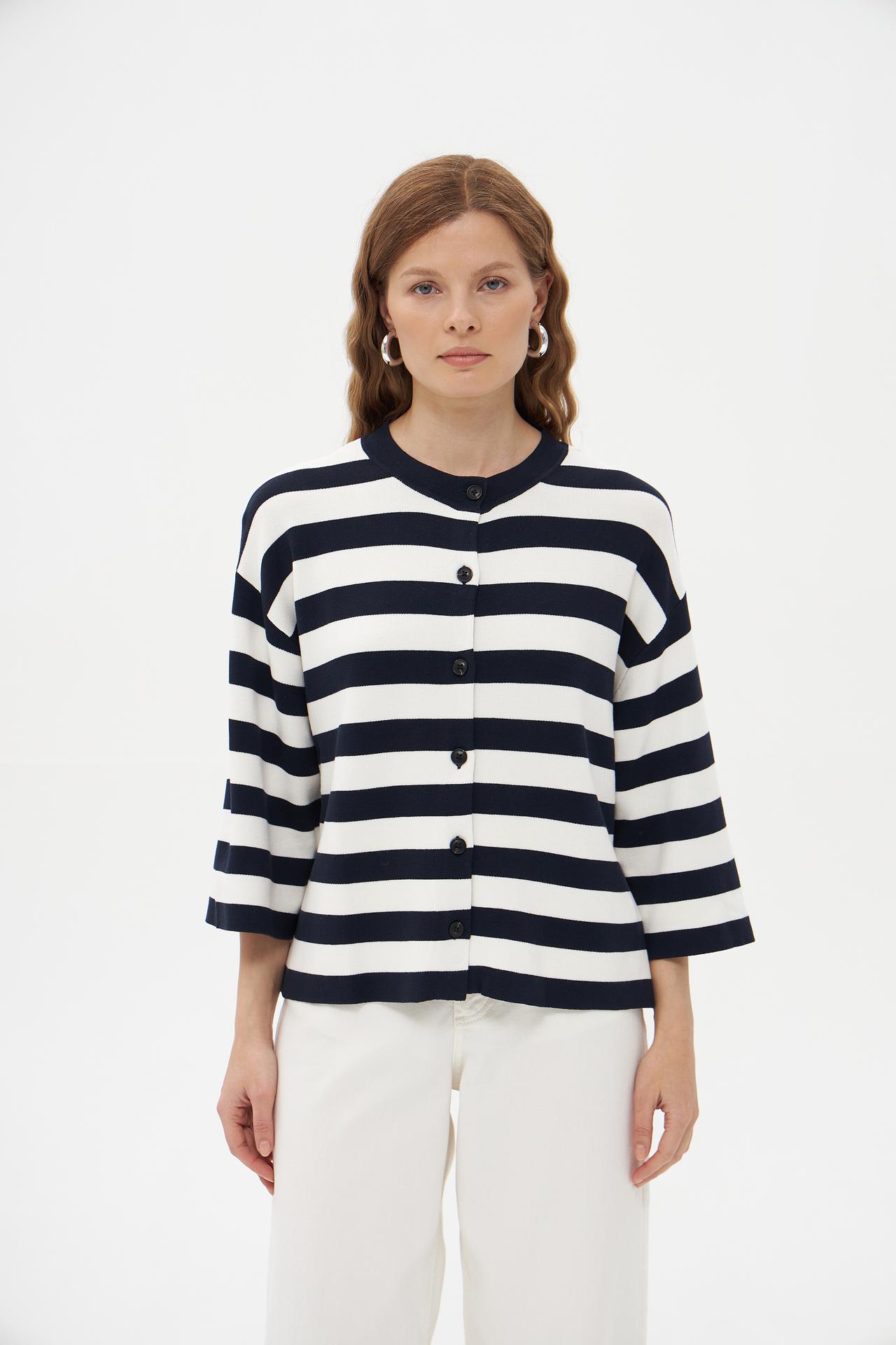 - Универсальный дизайн. Жакет в полоску легко сочетается с различными элементами гардероба, добавляя изысканности любому образу.