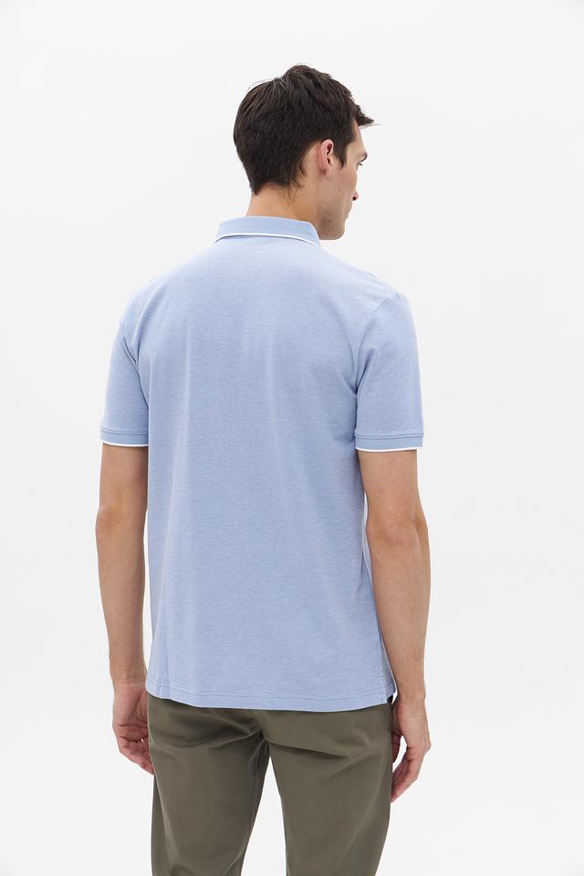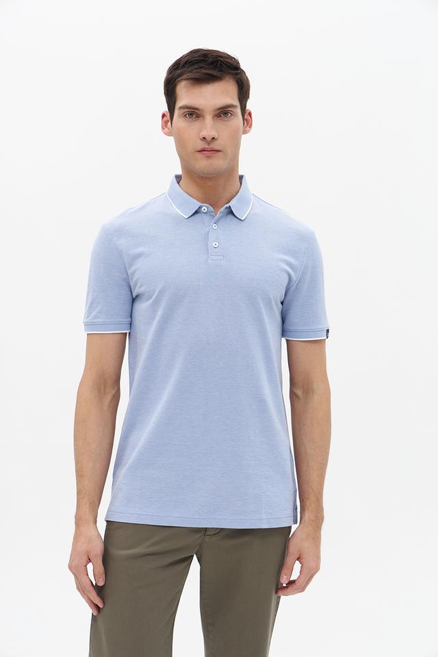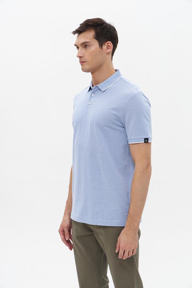 Нежный голубой цвет делает эту модель универсальной и легко сочетаемой с различными элементами одежды. Поло идеально подходит для создания повседневных образов, а также для более расслабленных мероприятий.