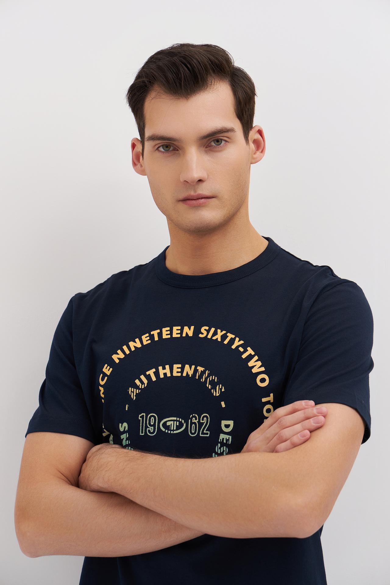 Представляем стильную мужскую футболку Tom Tailor, выполненную из 100% натурального хлопка. Эта футболка сочетает в себе комфорт и современный дизайн, что делает ее идеальным выбором для повседневной носки. Модель с круглым вырезом и короткими рукавами украшена оригинальным принтом, добавляющим образу индивидуальности и динамичности. Футболка отлично сочетается с джинсами, шортами и спортивными брюками.