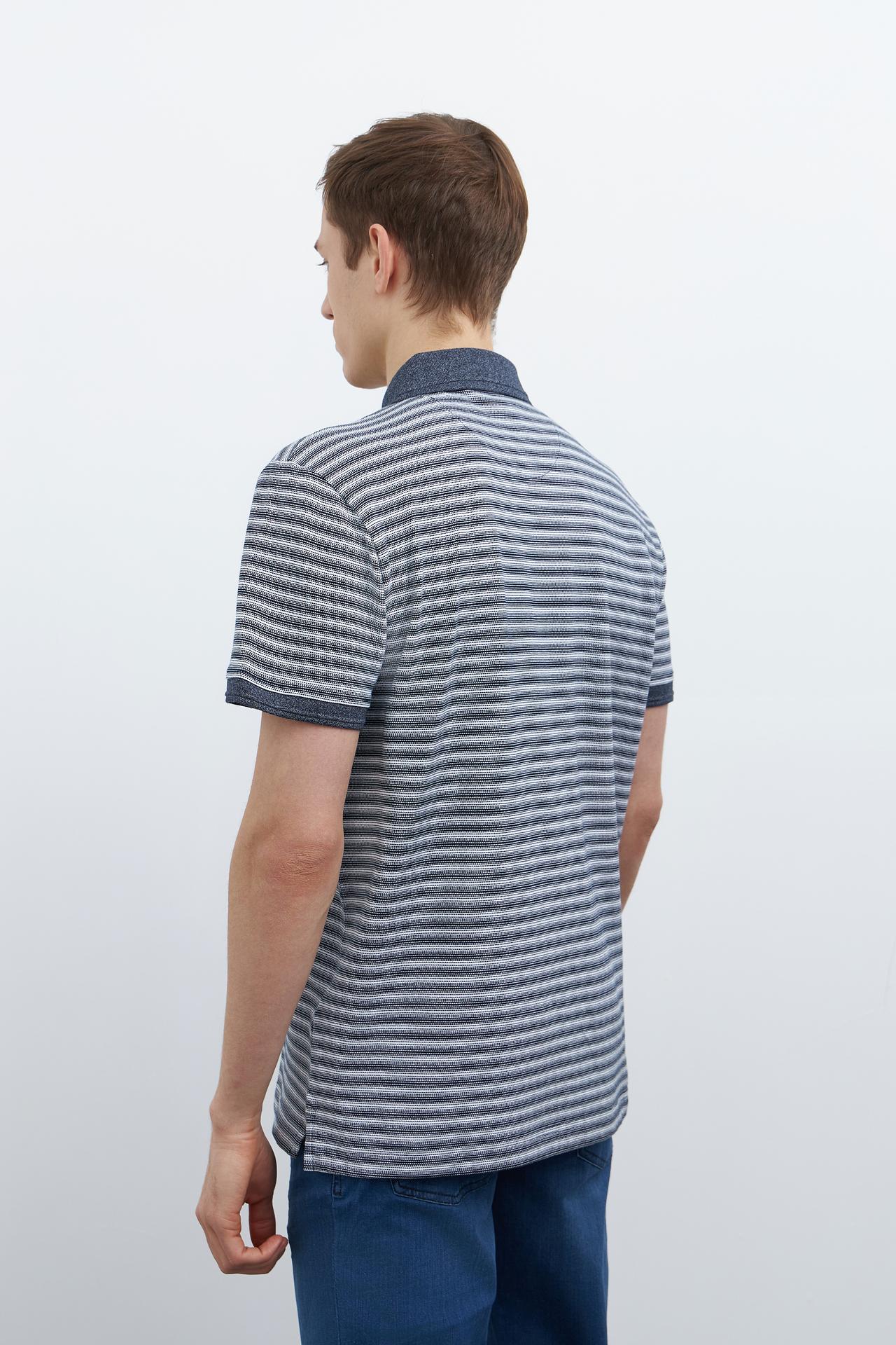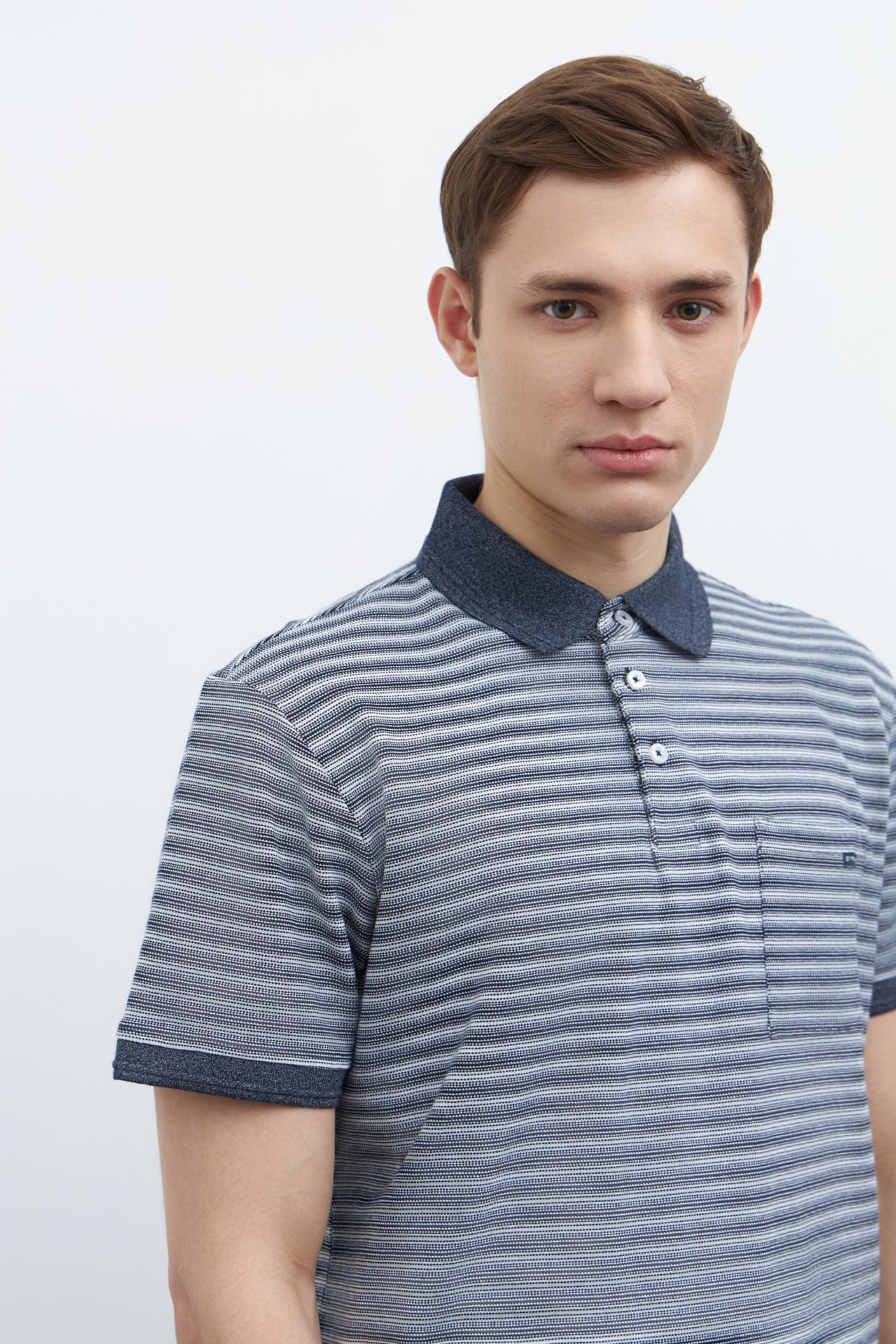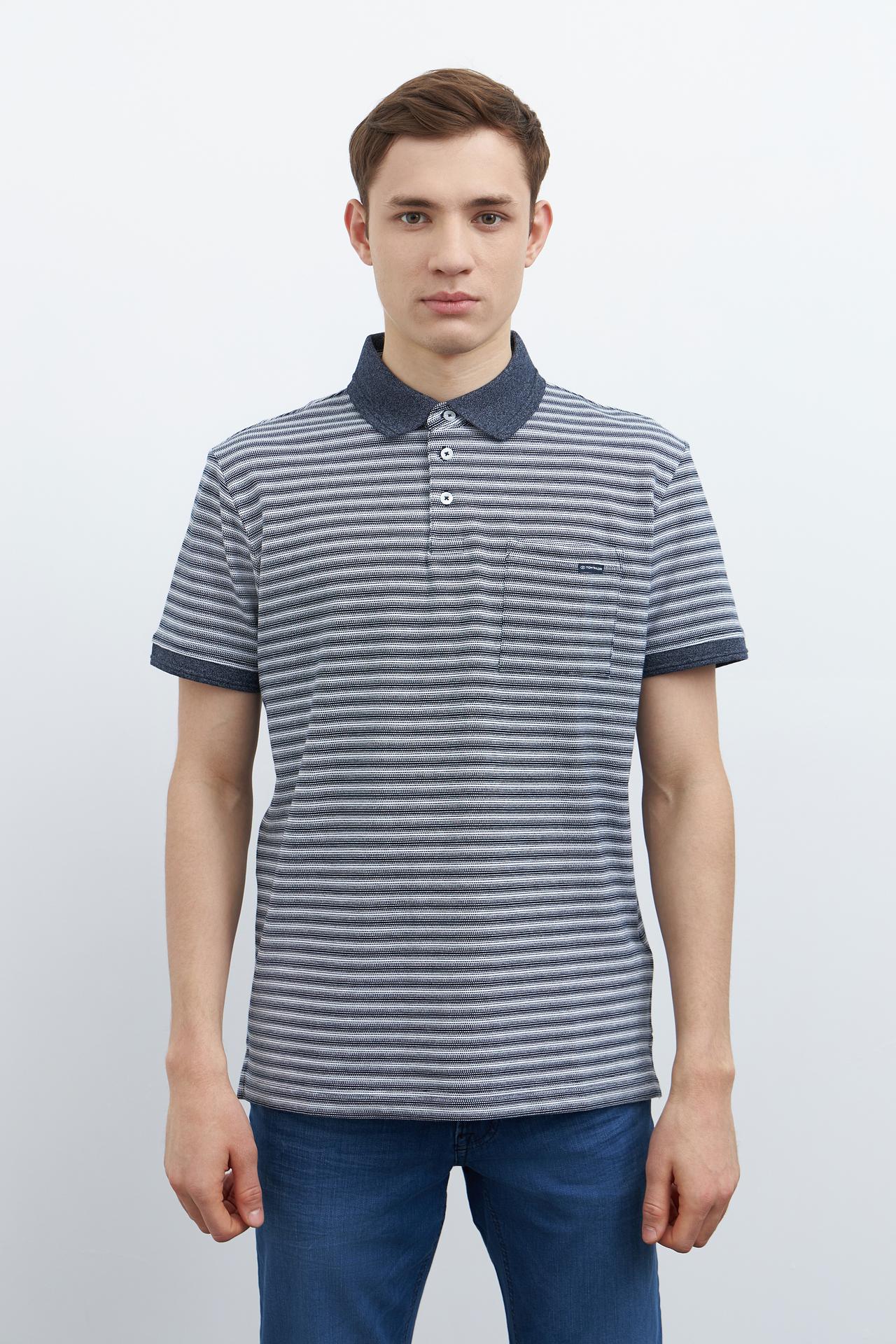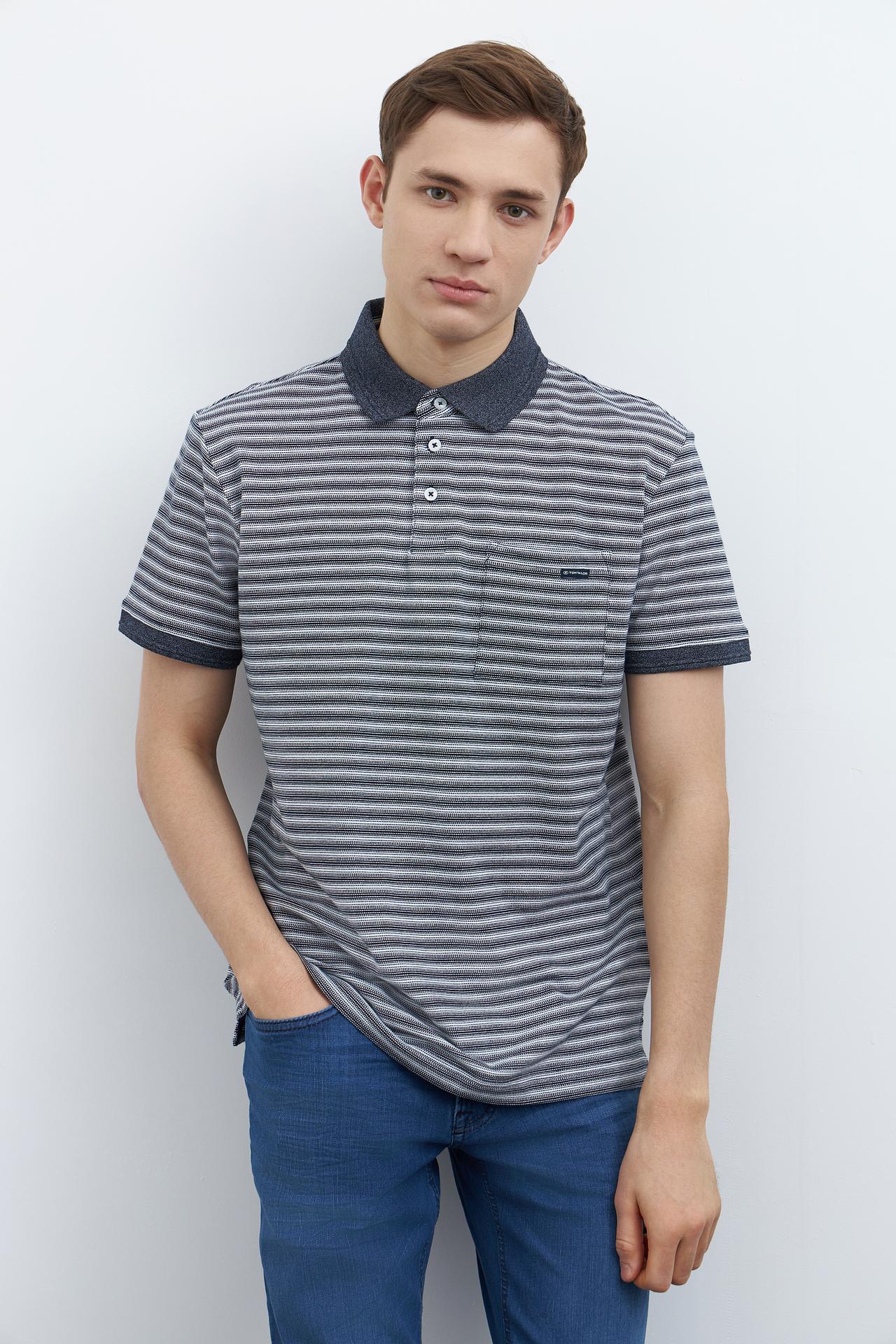- Дизайн: Поло имеет классический крой с коротким рукавом, отложным воротником и планкой с тремя пуговицами. Оригинальность модели подчеркивает принт в виде горизонтальной полоски и нагрудный карман.