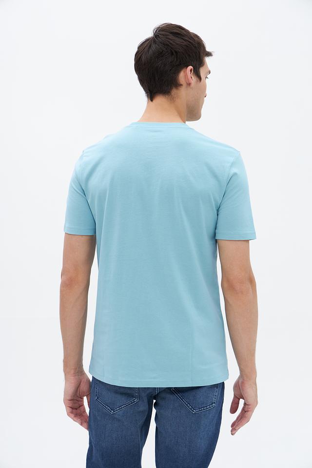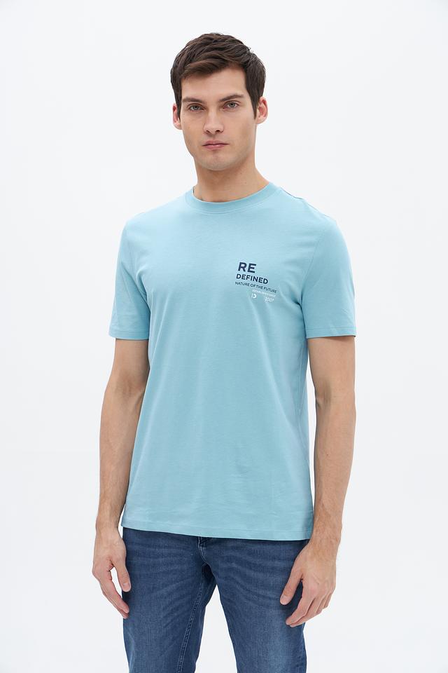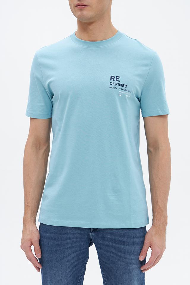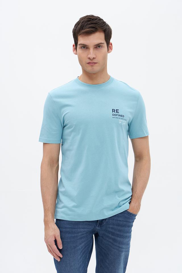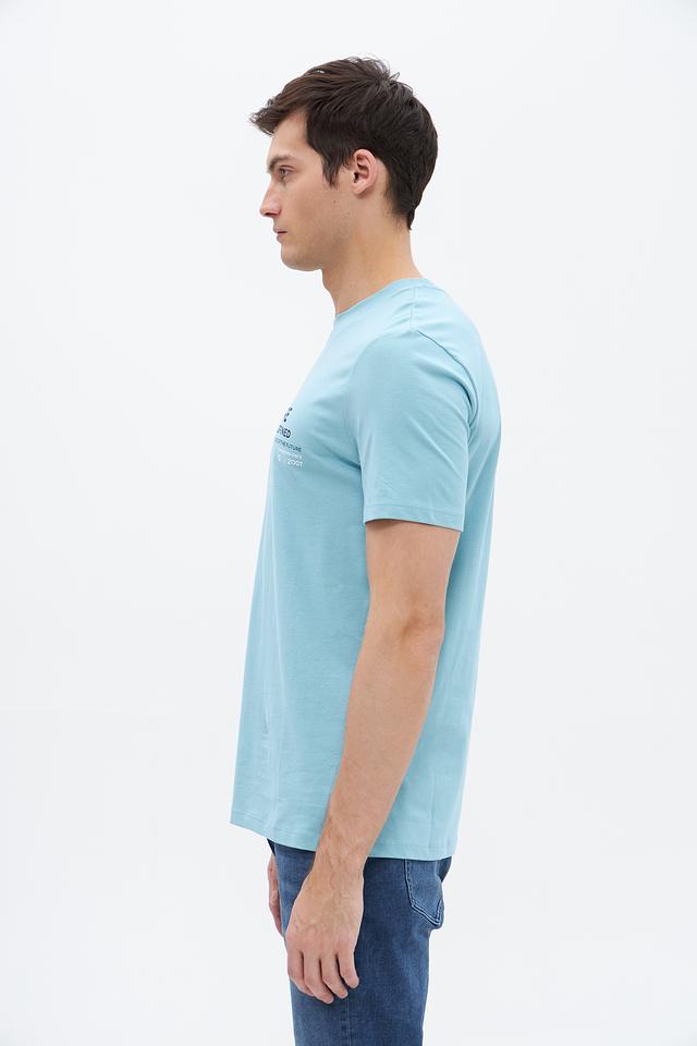 Мужская футболка Tom Tailor denim голубого цвета с коротким рукавом и принтом на груди. Изготовлена из 100% хлопка, обеспечивающего комфорт и воздухопроницаемость. Состав: хлопок 100%