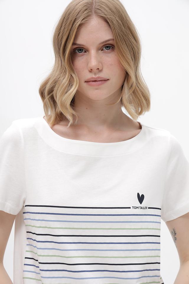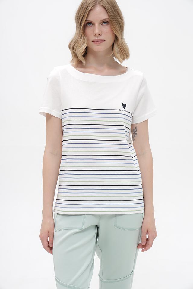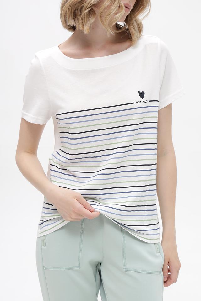 Белая футболка Tom Tailor с горизонтальными полосами. Модель выполнена из 100% хлопка, обеспечивающего комфорт в носке. Классический крой и лаконичный дизайн. Состав: хлопок 100%