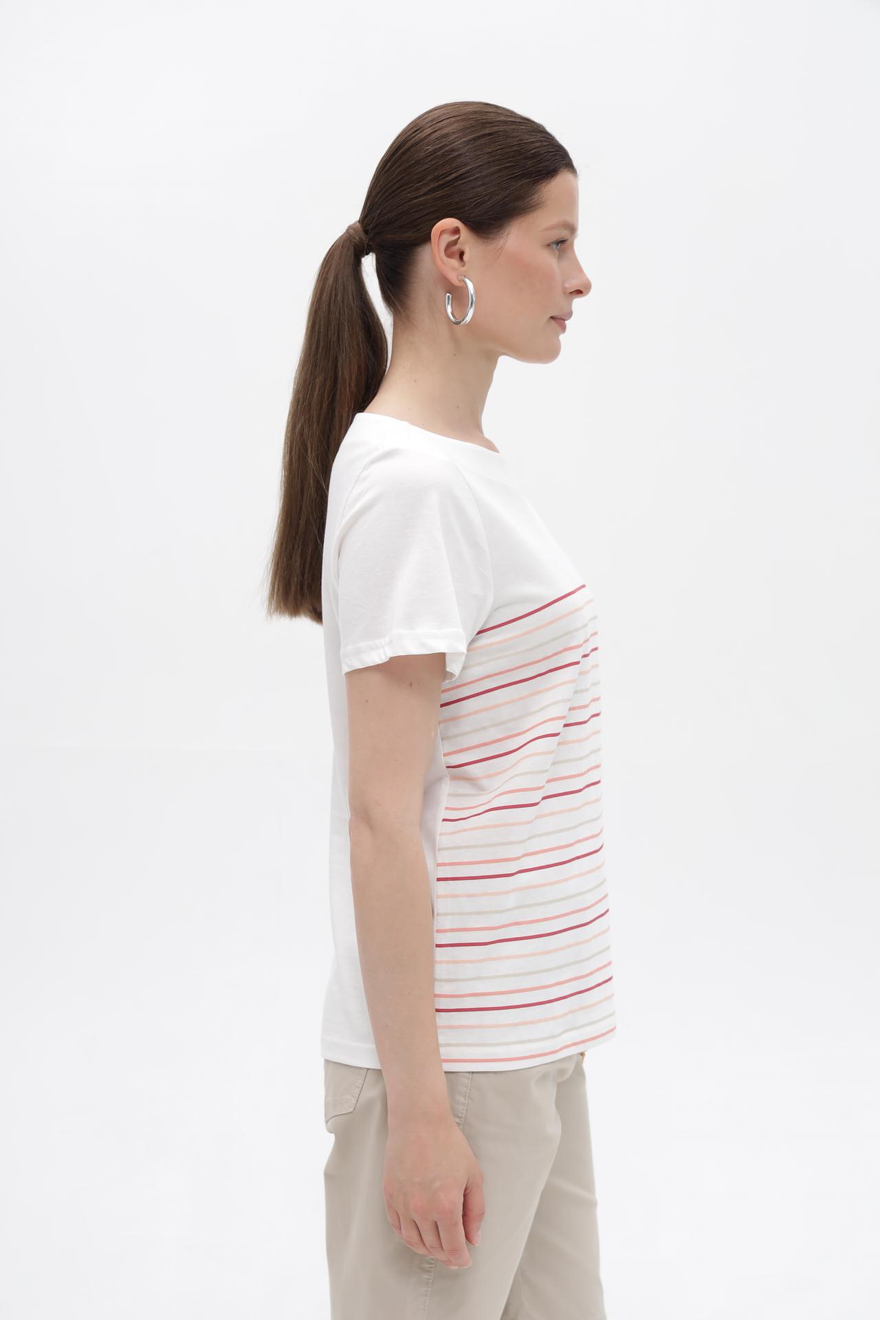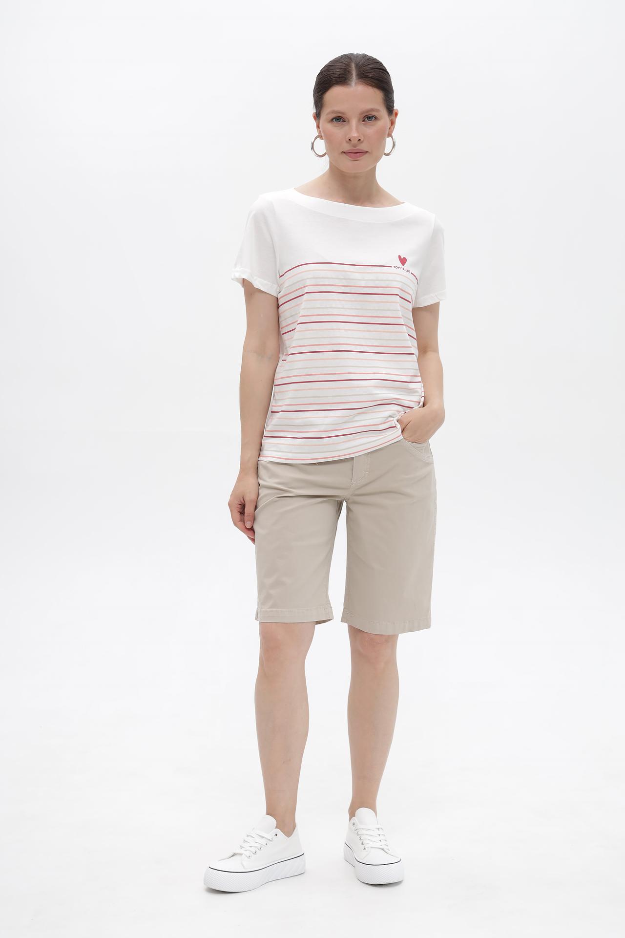 - Дизайн: Полосатый принт и декоративное сердечко придают футболке уникальный и запоминающийся вид.