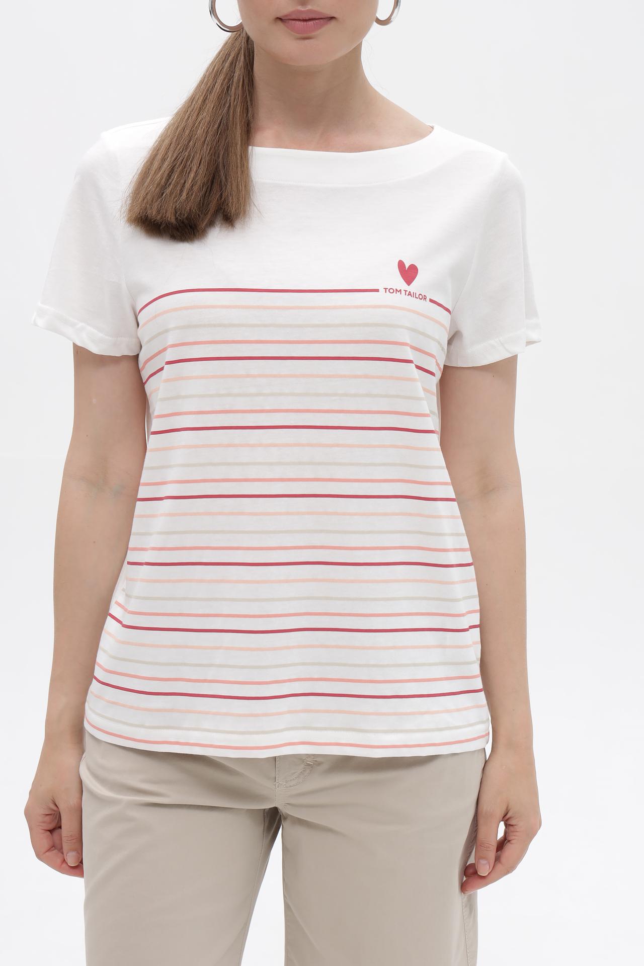 Футболка Tom Tailor – это стильный и удобный выбор для повседневного гардероба. Выполнена из 100% хлопка, что обеспечивает мягкость и комфорт при носке. Дизайн с горизонтальными полосками разных оттенков и небольшим сердечком добавляет образу легкости и женственности. Эта футболка идеально подойдет для создания непринужденных и модных образов.