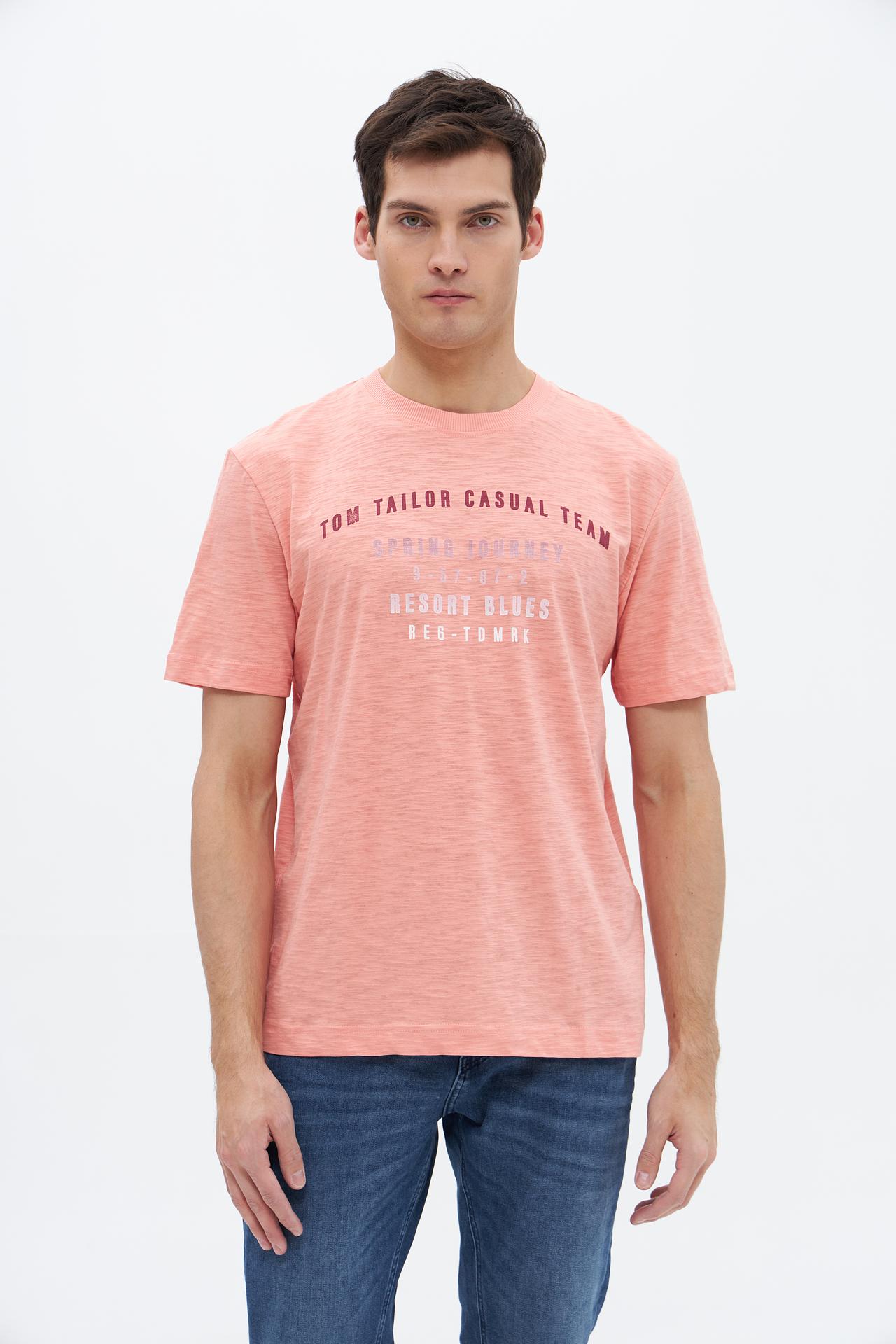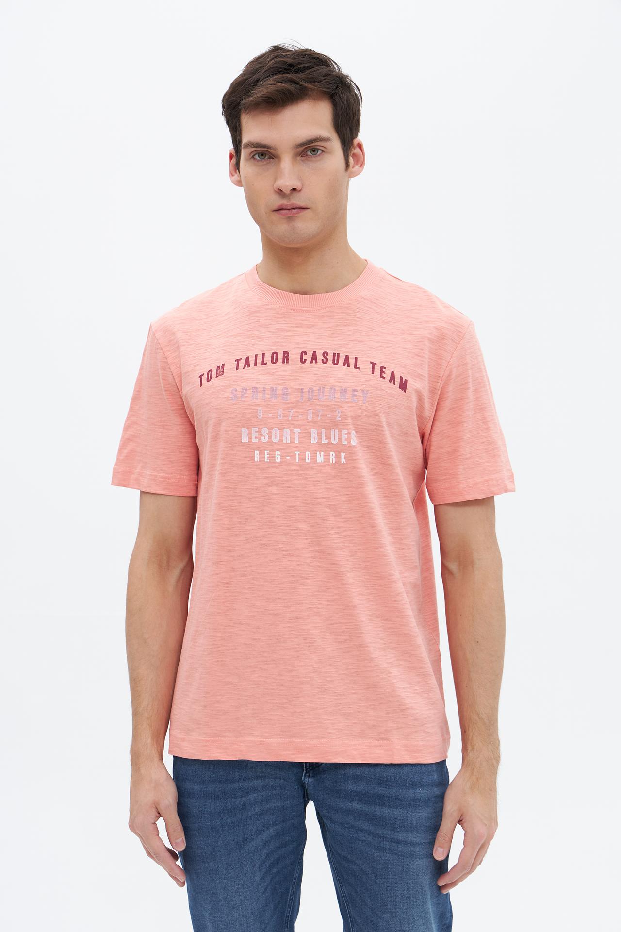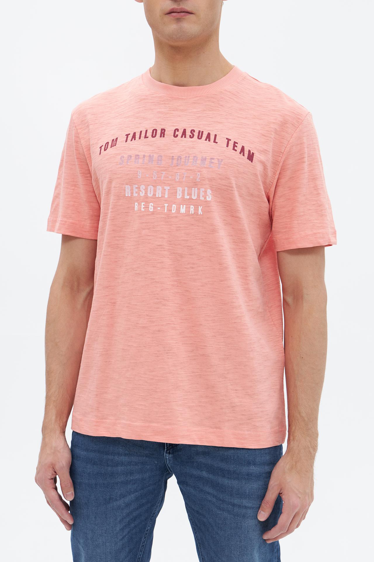 Футболка Tom Tailor оранжевая с текстовым принтом