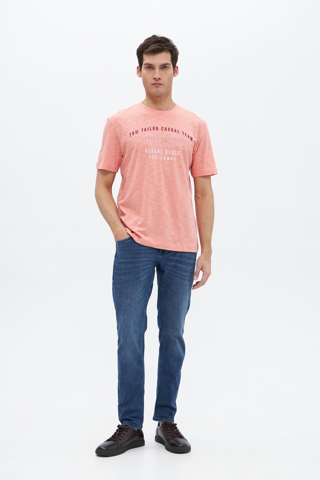 Футболка прямого кроя гарантирует свободу движений и превосходную посадку. Центральный акцент — оригинальный текстовый принт на груди, выполненный в градиентной технике, который добавляет индивидуальности и узнаваемости бренду Tom Tailor. Это отличная базовая вещь, которая легко комбинируется как с классическими джинсами, так и со спортивными шортами, создавая непринужденный casual-образ.