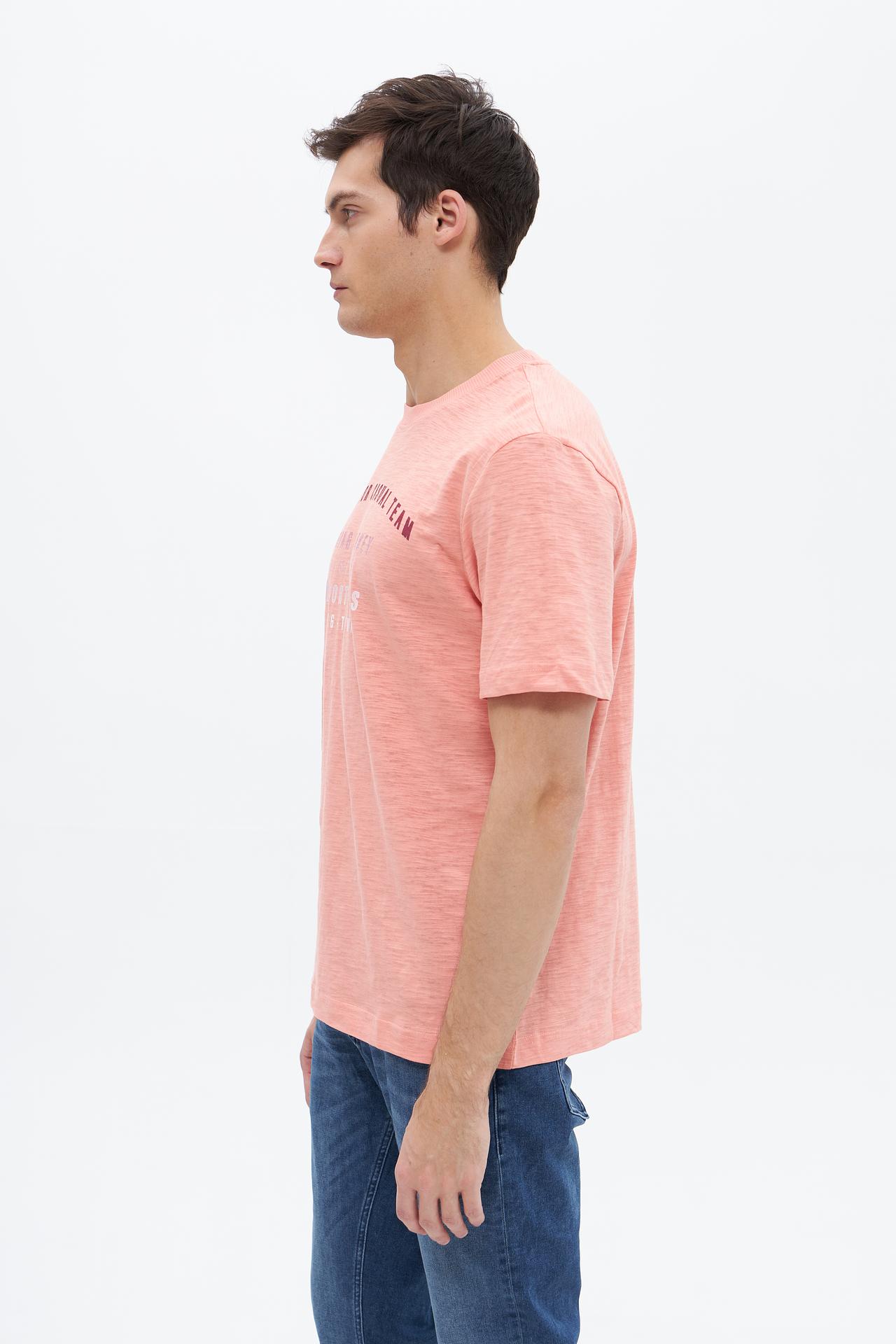 - Дизайн: Модель в оранжевом цвете с меланжевым эффектом украшена контрастным многоцветным текстовым принтом на груди. Круглый вырез горловины и короткие рукава дополняют классический дизайн, делая футболку универсальной.