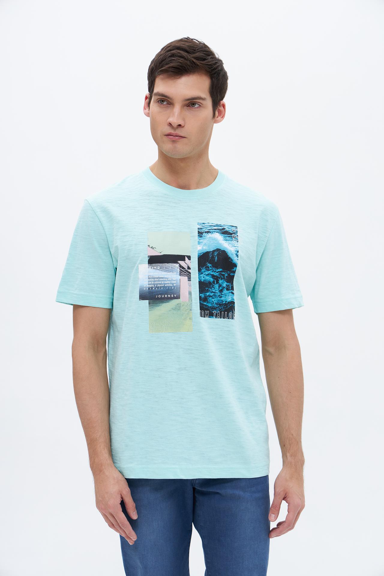 Футболка Tom Tailor голубая мужская с графическим принтом