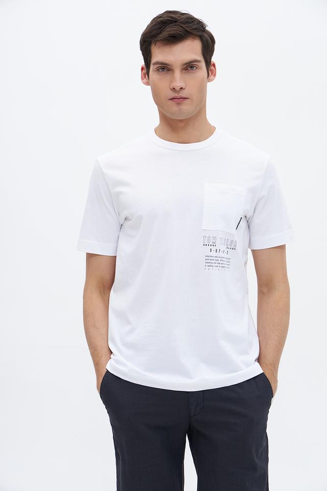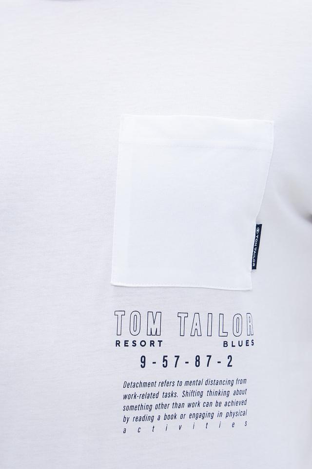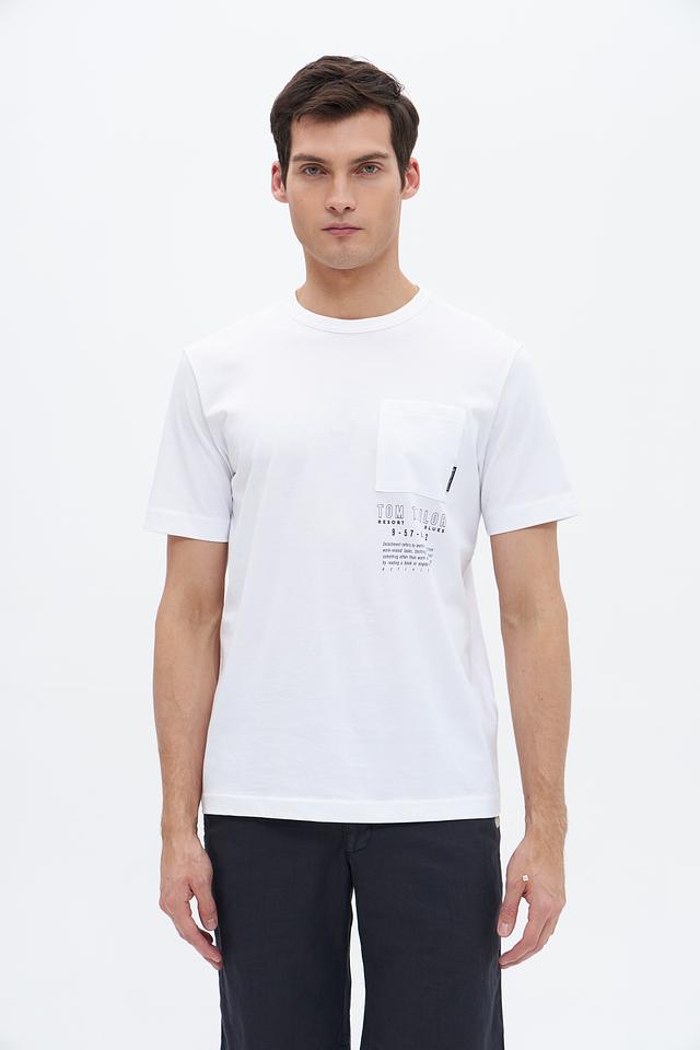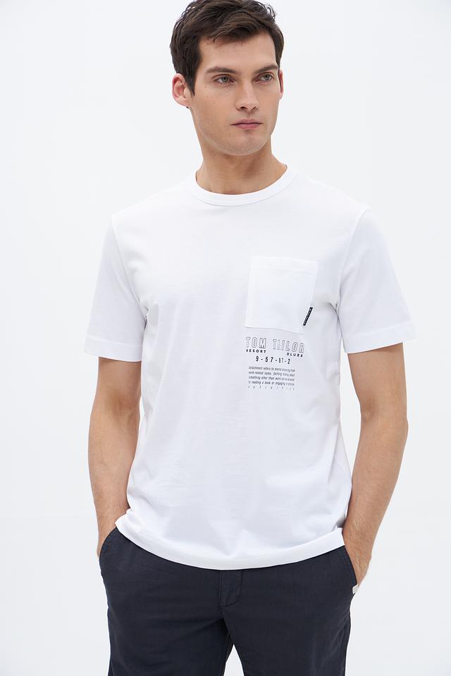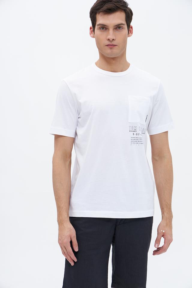 Белая футболка Tom Tailor с коротким рукавом и оригинальным принтом на нагрудном кармане. Изготовлена из 100% хлопка, обеспечивающего комфорт и воздухопроницаемость. Идеальный выбор для повседневного образа. Состав: хлопок 100%