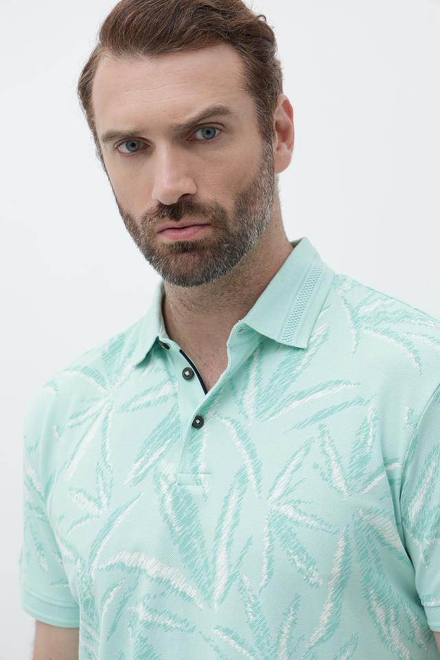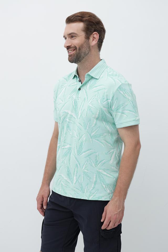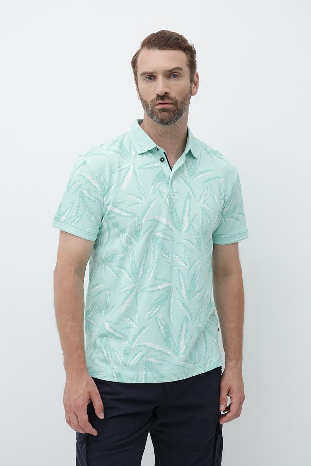 Это мужское поло от Tom Tailor выполнено в нежном мятном цвете и украшено оригинальным тропическим принтом, добавляющим образу свежесть и легкость.