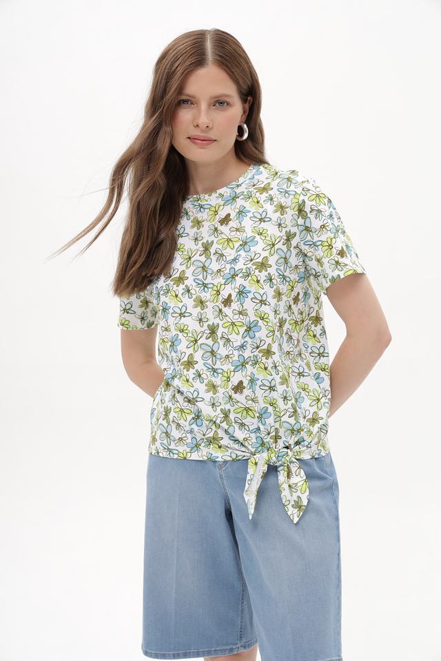 Лёгкая блузка Tom Tailor белого цвета с ярким цветочным принтом и завязками на талии. Изготовлена из 100% хлопка, обеспечивающего комфорт и воздухопроницаемость. Состав: хлопок 100%
