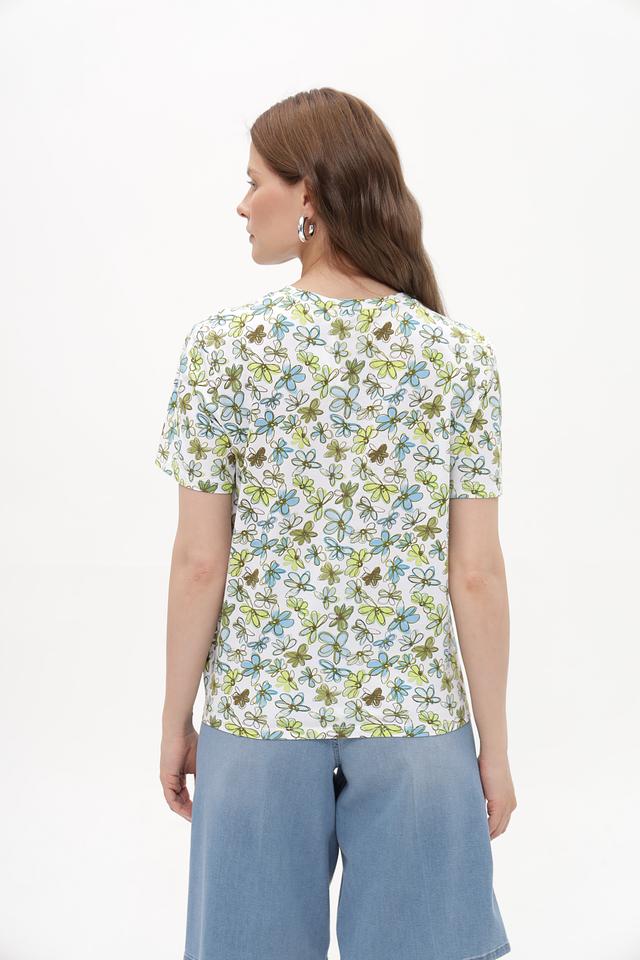 Эта блузка станет отличным дополнением к вашему летнему гардеробу. Она идеально сочетается с джинсами, шортами или юбками, создавая непринужденный и стильный образ. Благодаря своему легкому и воздушному крою, блузка идеально подходит для повседневной носки в теплую погоду.