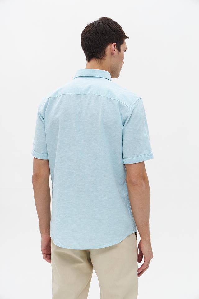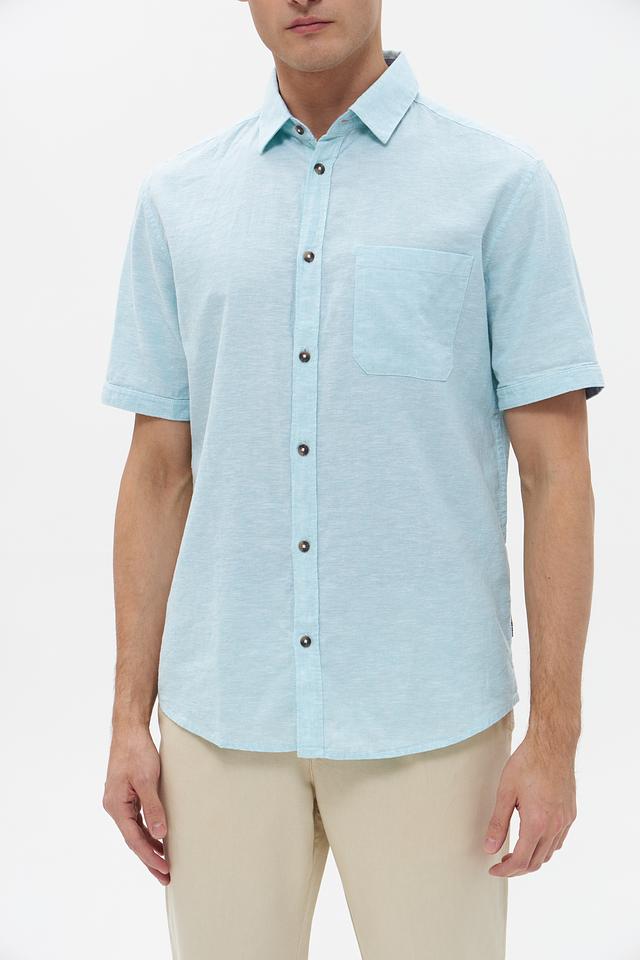 Мужская рубашка Tom Tailor мятного цвета с коротким рукавом, выполнена из 100% хлопка. Удобный крой и натуральный материал обеспечивают комфорт в жаркую погоду. Состав: хлопок 100%