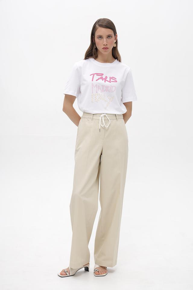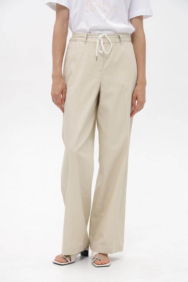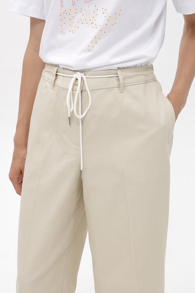 Брюки оснащены поясом с завязками, что позволяет регулировать посадку по фигуре. Наличие боковых карманов добавляет функциональности. Данная модель станет отличным выбором для создания повседневных образов.