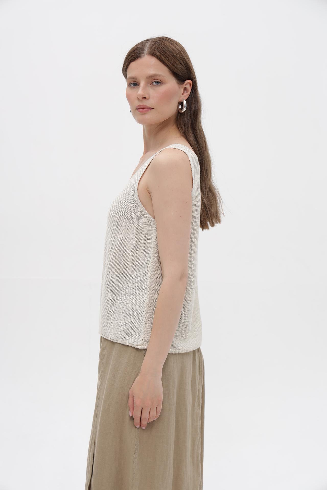 - Детали: Деликатная вязка и меланжевый эффект придают топу особую изысканность.