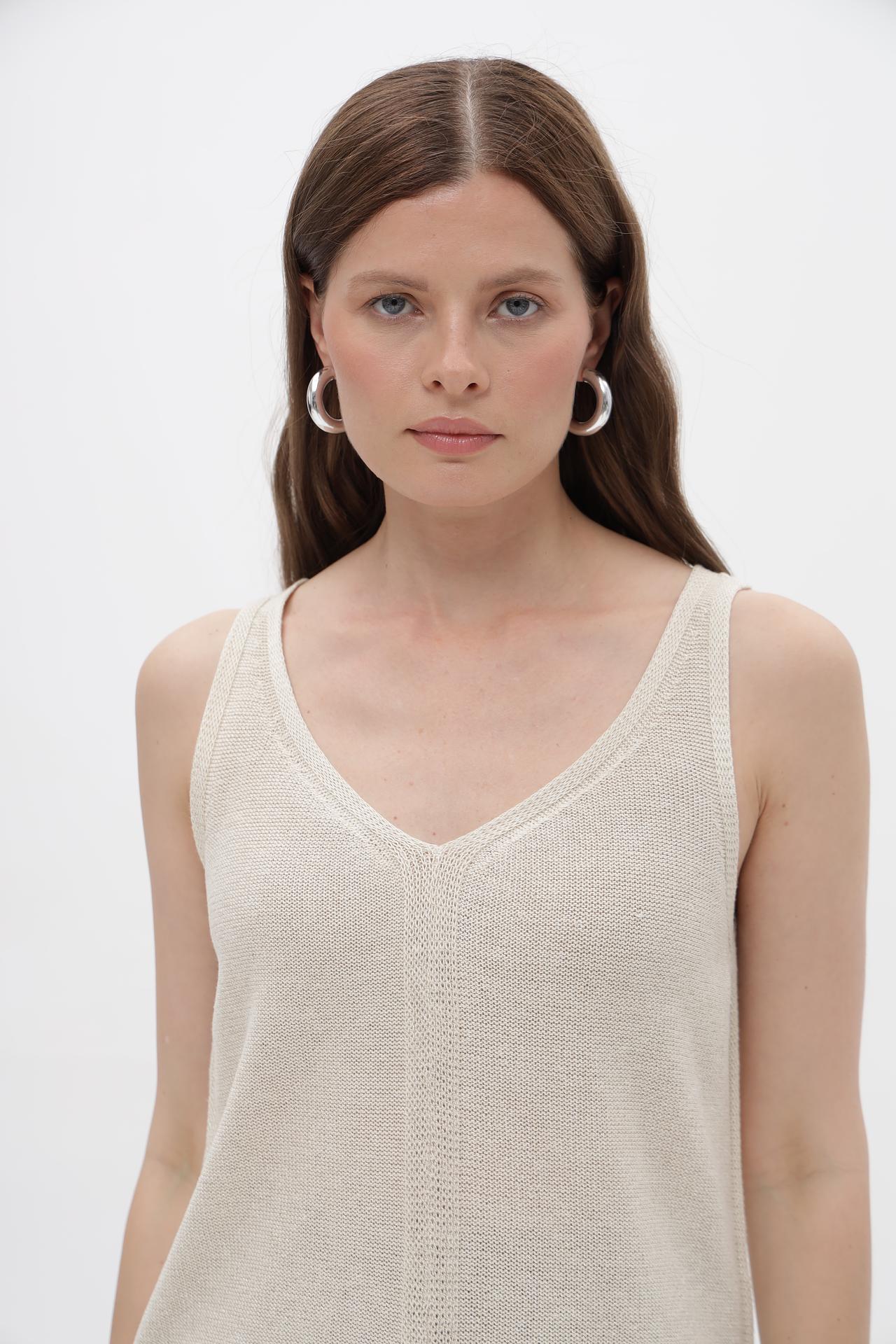 - Крой: Классический крой с V-образным вырезом и широкими лямками создает женственный силуэт и обеспечивает свободу движений.