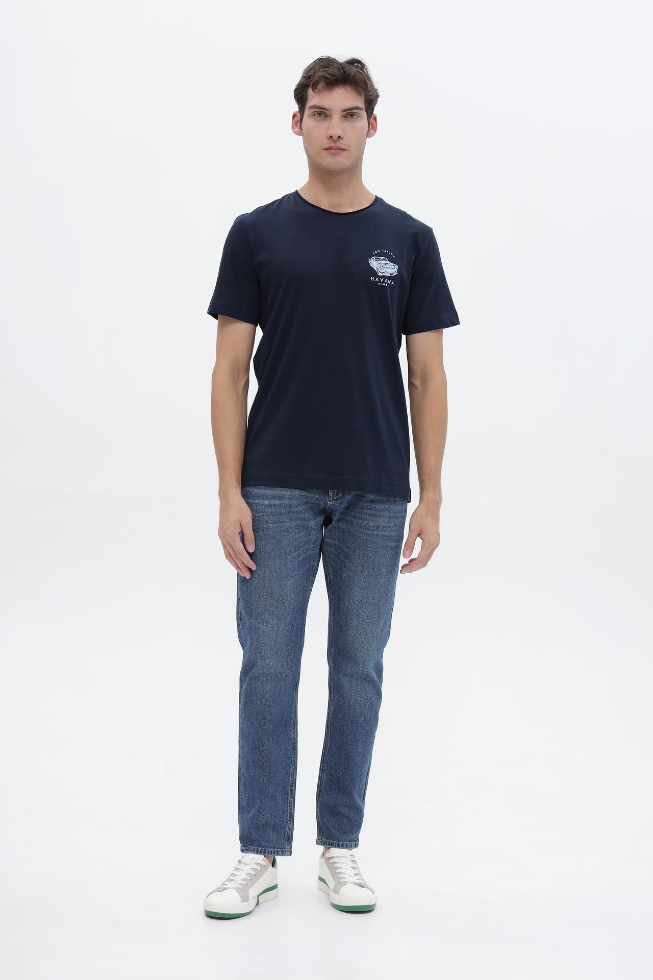 - Дизайн: Классический крой и насыщенный синий цвет. Футбока дополнена принтом с изображением ретро-автомобиля.
