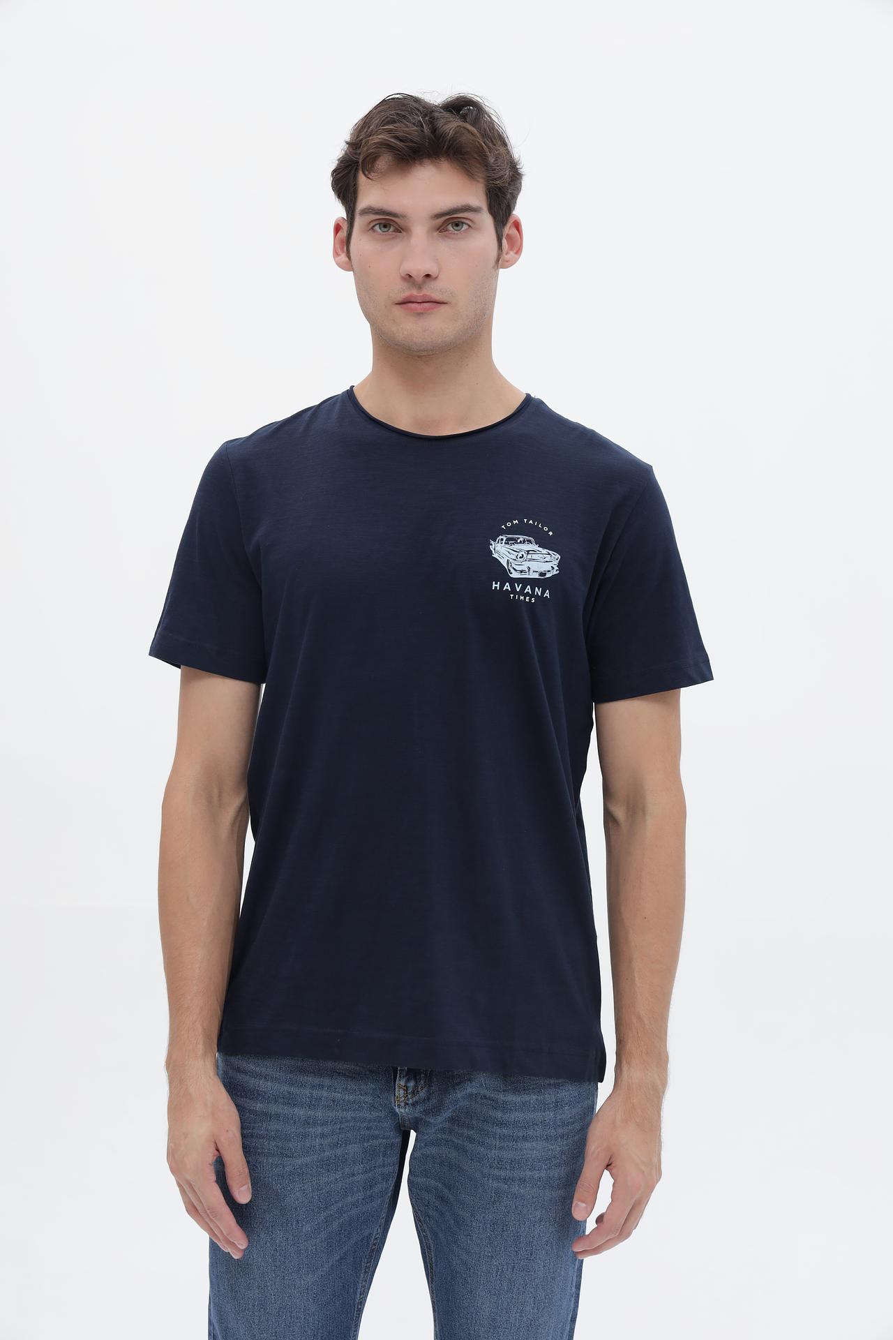 Футболка от бренда Tom Tailor, выполненная из 100% хлопка, станет отличным дополнением к вашему повседневному гардеробу. Классический синий цвет и лаконичный дизайн делают её универсальной для сочетания с различными элементами одежды.