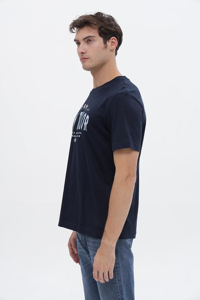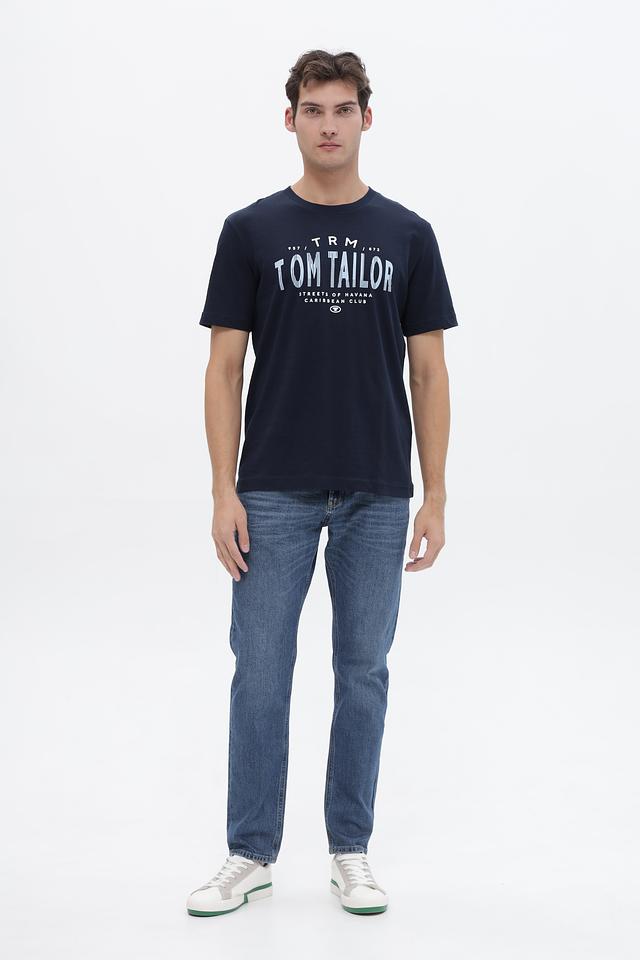 Мужская футболка Tom Tailor синего цвета с ярким белым логотипом на груди. Изготовлена из 100% хлопка, обеспечивающего комфорт и воздухопроницаемость. Отличный выбор для повседневного образа. Состав: хлопок 100%