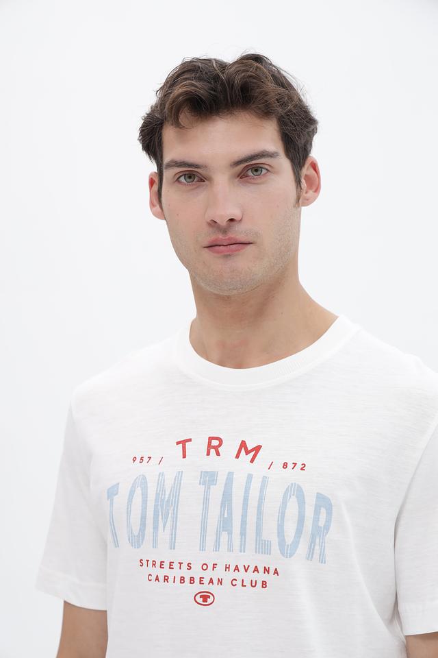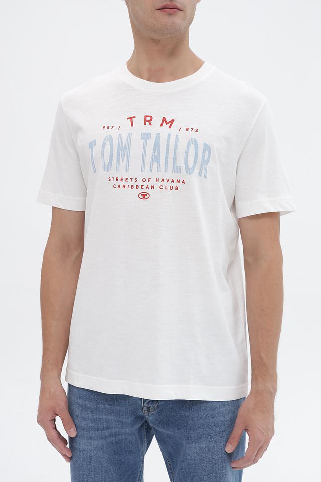 Белая футболка Tom Tailor с ярким принтом "Streets of Havana". Изготовлена из 100% хлопка, обеспечивая комфорт и воздухопроницаемость. Отличный выбор для повседневного образа. Состав: хлопок 100%