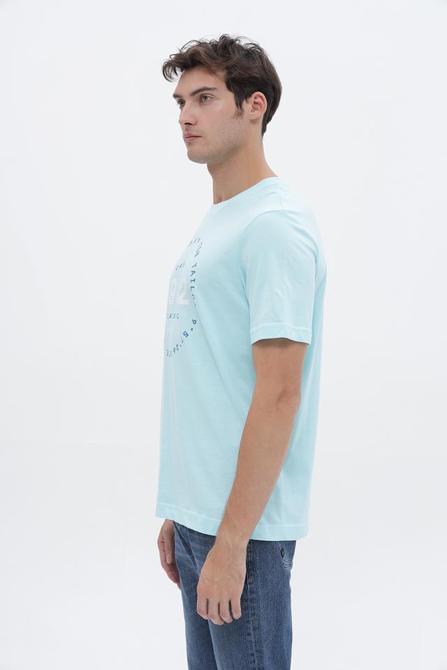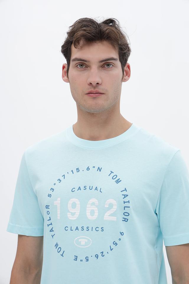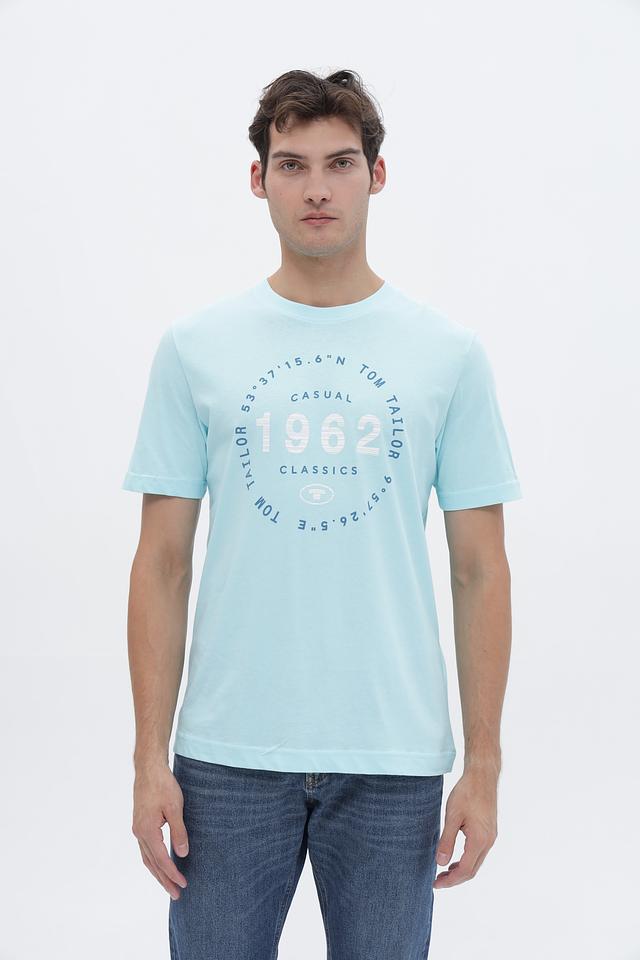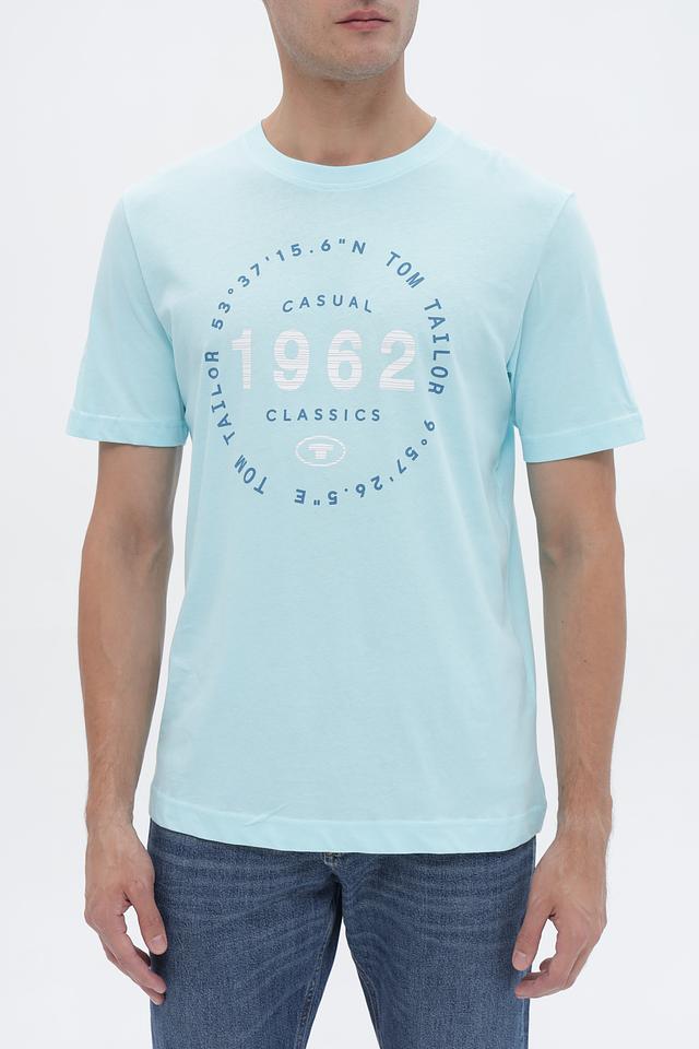 Голубая футболка Tom Tailor из 100% хлопка с круглым вырезом и оригинальным принтом. Идеальный выбор для создания повседневного образа в стиле casual. Состав: хлопок 100%