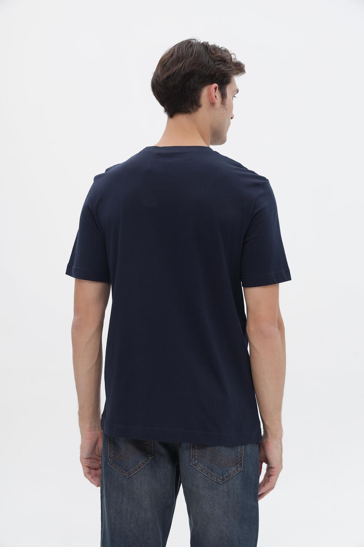 - Цвет: Глубокий синий цвет (navy) легко сочетается с другими элементами гардероба, делая эту футболку универсальной.