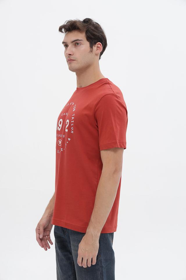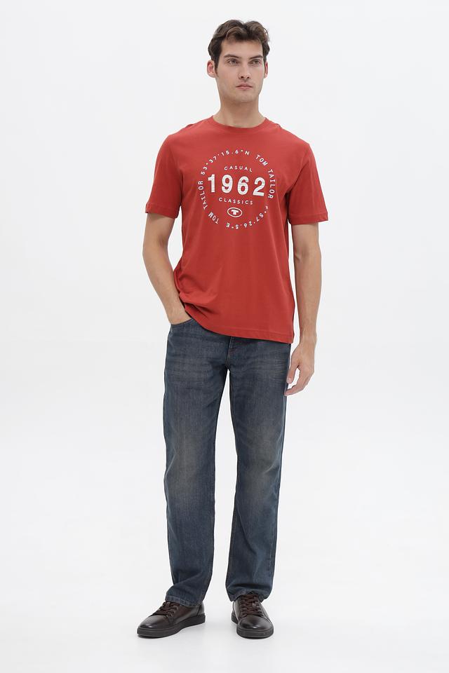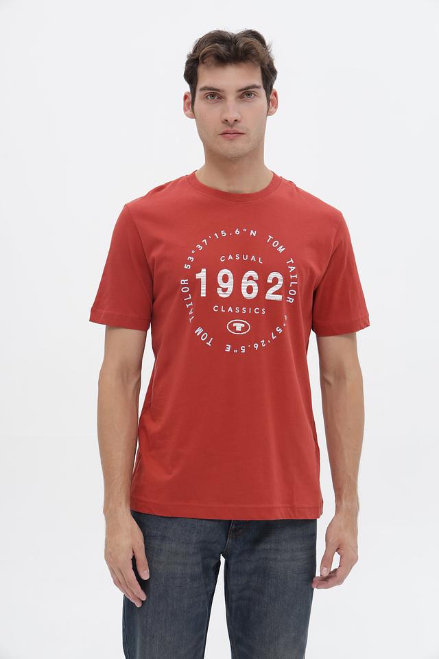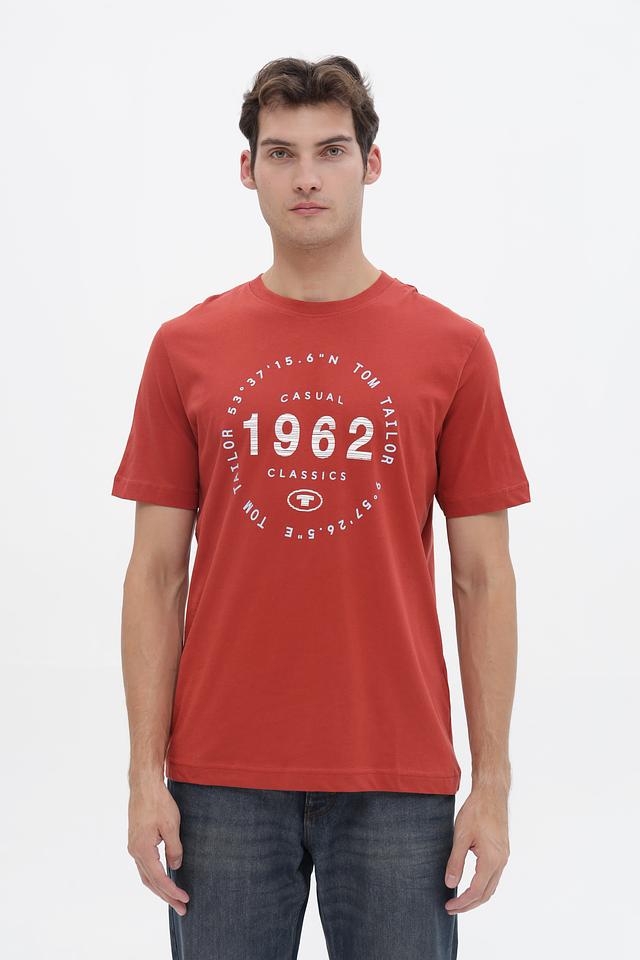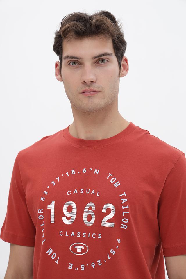 Мужская футболка Tom Tailor терракотового цвета с круглым вырезом и оригинальным графическим принтом. Изготовлена из 100% хлопка, обеспечивающего комфорт и воздухопроницаемость. Состав: хлопок 100%