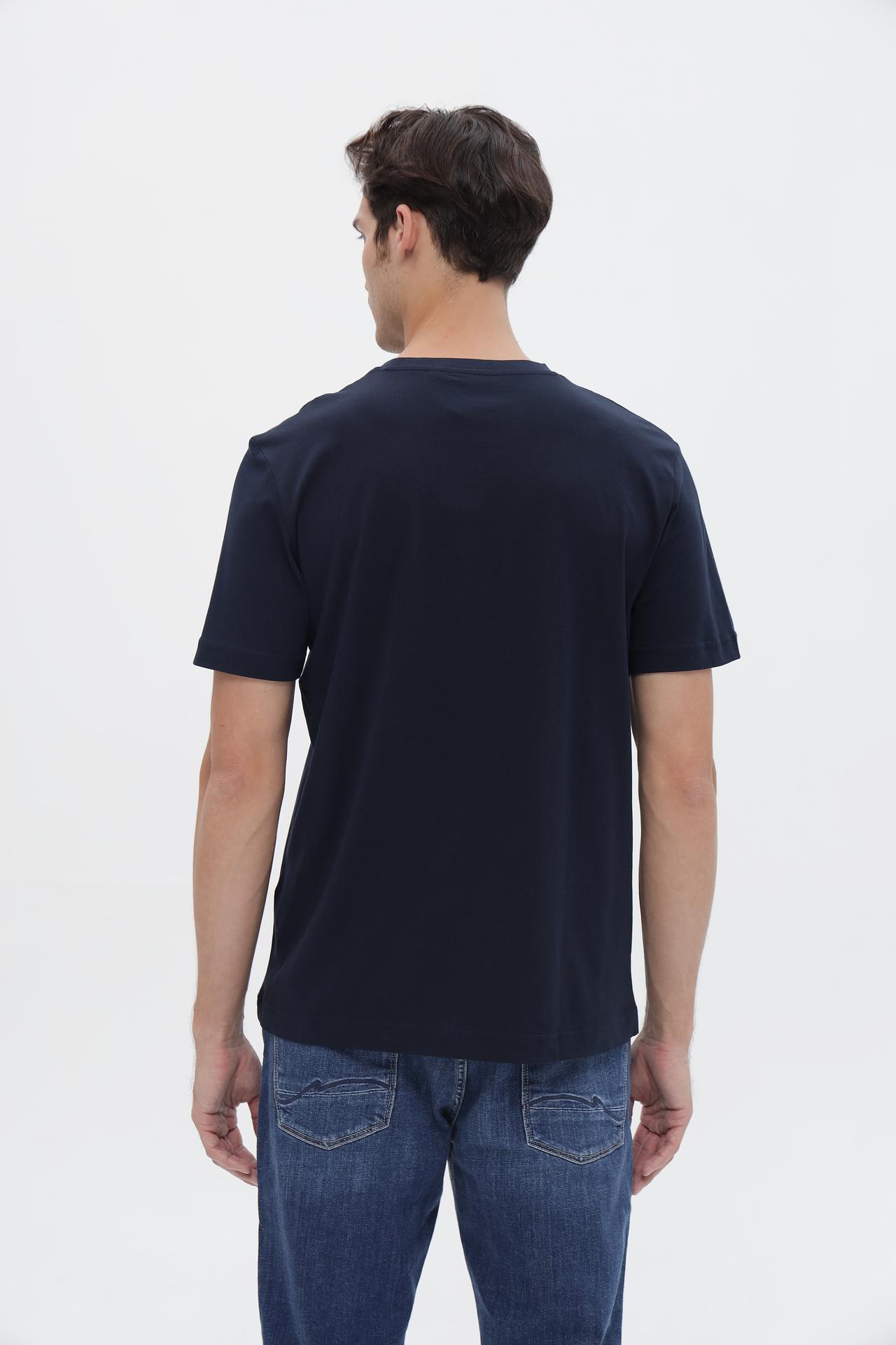 - Дизайн: Классический крой с коротким рукавом и круглым вырезом горловины. Темно-синий цвет легко сочетается с различными элементами одежды.
