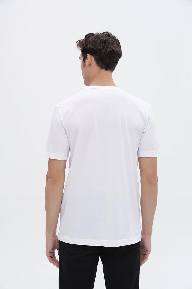 Футболка имеет классический прямой крой, который подходит для большинства типов фигур. На груди расположен небольшой логотип бренда, выполненный в сером цвете, что придает ей лаконичный и современный вид.