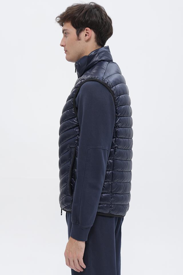 Мужской жилет от Tom Tailor выполнен в насыщенном синем цвете. Модель имеет стеганую фактуру, которая придает ей современный и стильный вид. Застежка – молния. Воротник – стойка.