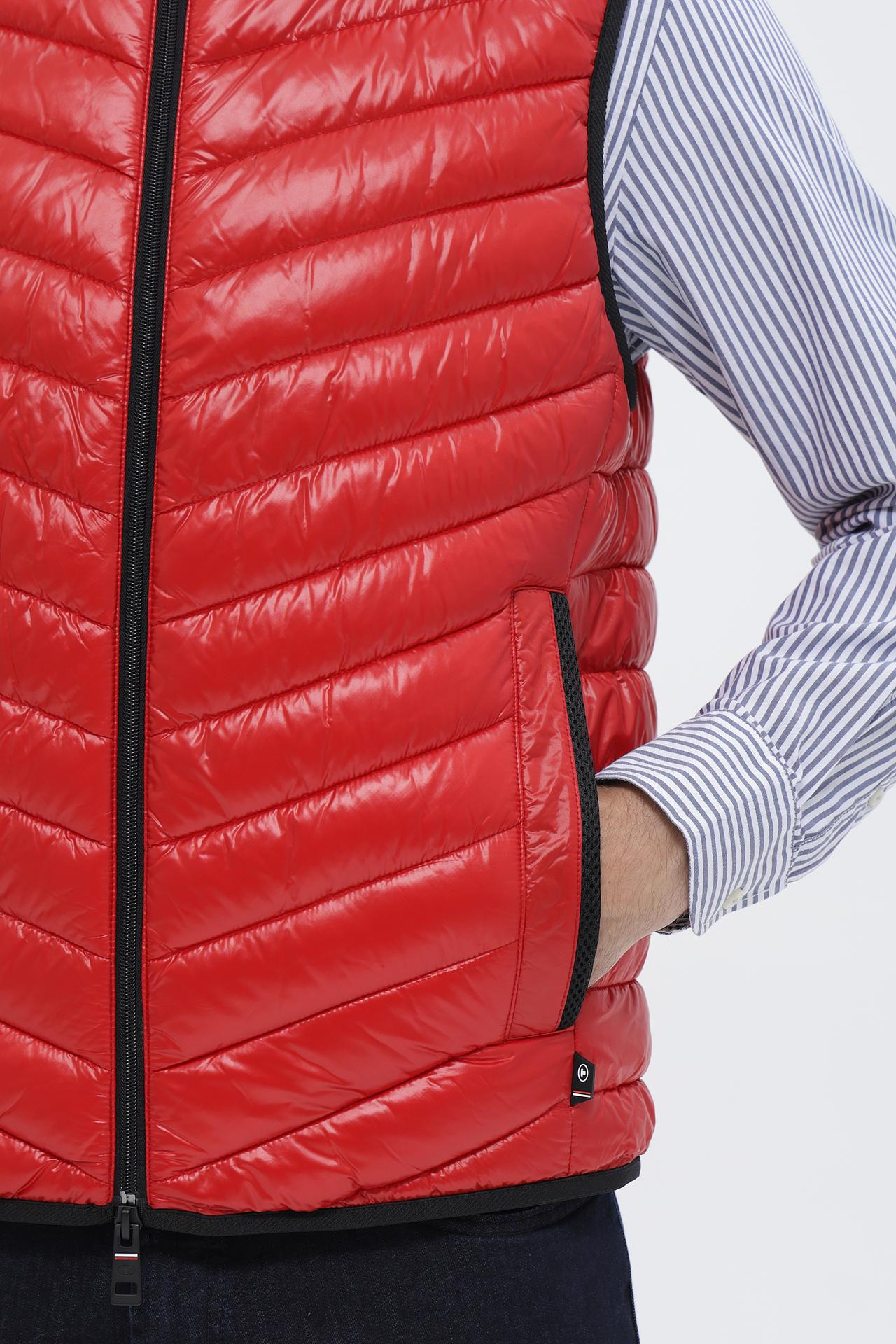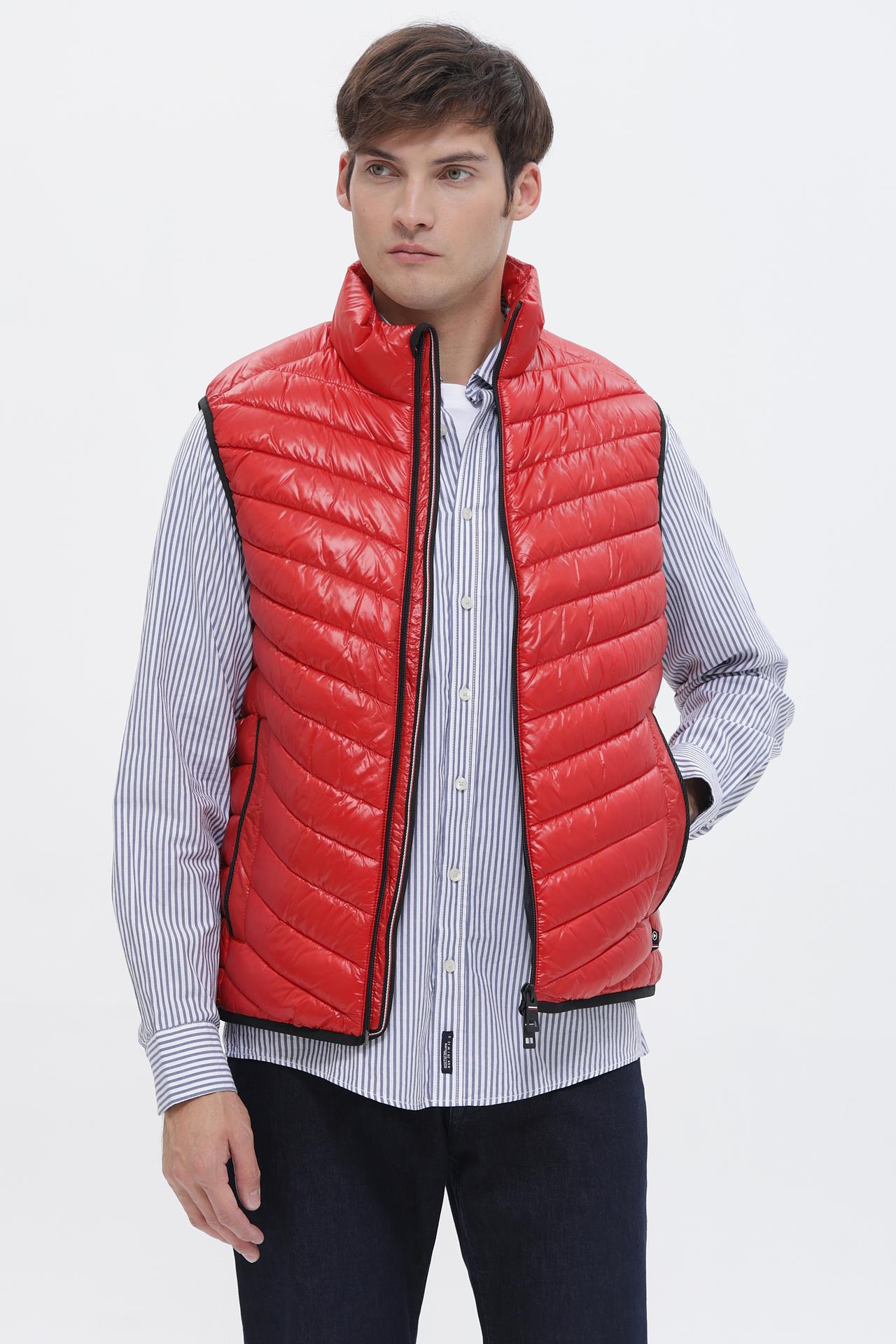 - Дизайн: Современный крой и стеганая поверхность придают жилету актуальный вид. Яркий красный цвет делает его заметным акцентом в любом гардеробе. Черная окантовка и молния добавляют контрастности.