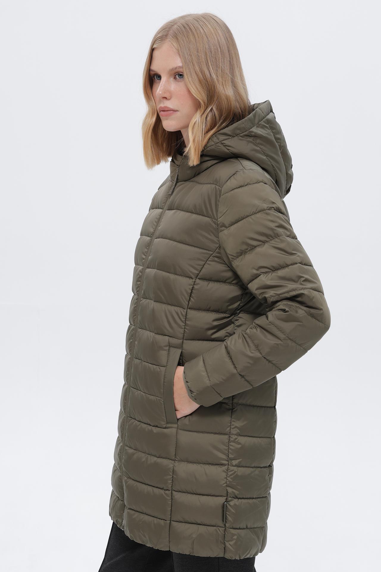 - Дизайн: Пальто имеет современный крой и удобный капюшон, который защитит от ветра и осадков. Горизонтальная простежка придает изделию аккуратный внешний вид.