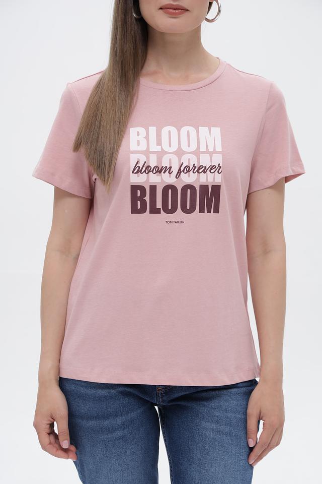 Розовая футболка Tom Tailor с ярким принтом "Bloom" и надписью "bloom forever". Изготовлена из 100% хлопка, обеспечивающего комфорт в носке. Стильный и удобный выбор для повседневного гардероба. Состав: хлопок 100%