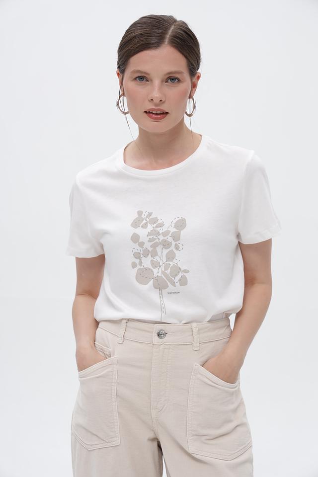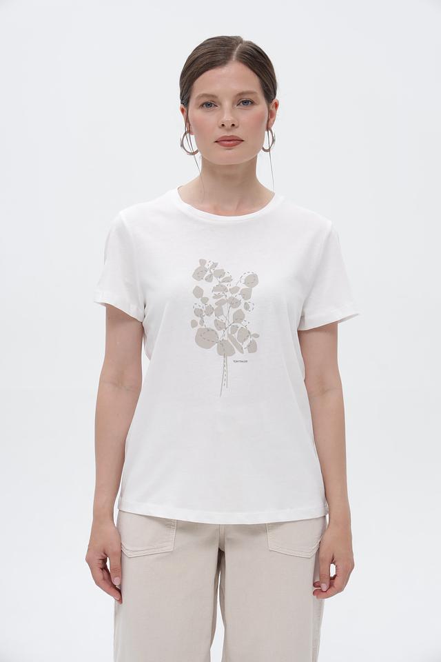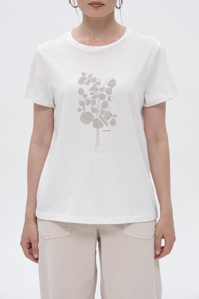 Белая футболка Tom Tailor с растительным принтом. Изготовлена из 100% хлопка, обеспечивающего комфорт в носке. Отличный выбор для создания повседневного образа. Состав: хлопок 100%
