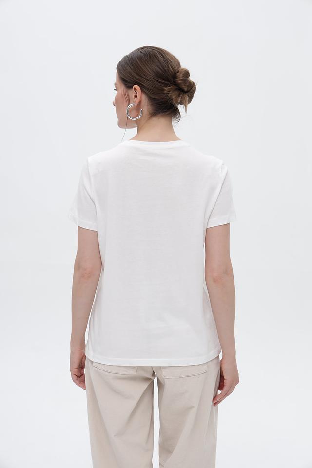 Эта модель станет прекрасной основой для создания различных повседневных образов. Её можно сочетать с джинсами, брюками, юбками или шортами. Футболка идеально подходит для прогулок, встреч с друзьями или активного отдыха. Благодаря натуральному составу, футболка приятна к телу и проста в уходе.