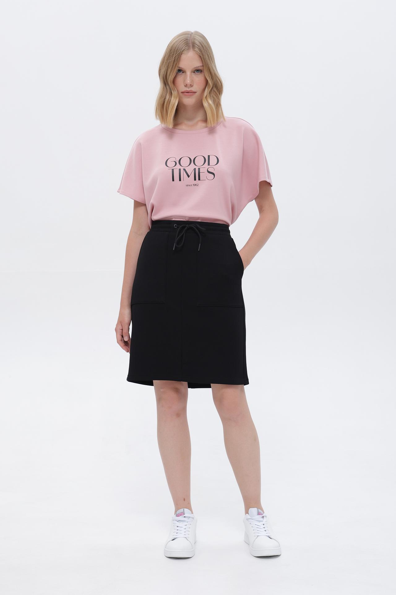 - Универсальность: Юбка легко сочетается как с базовыми футболками и топами, так и с более элегантными блузками, позволяя создавать образы в стиле casual или smart casual.