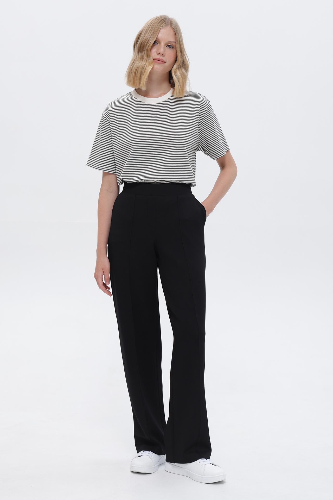 - Универсальность: Брюки легко комбинируются с различными верхами – от строгих блуз до повседневных футболок, что делает их основой для множества образов.