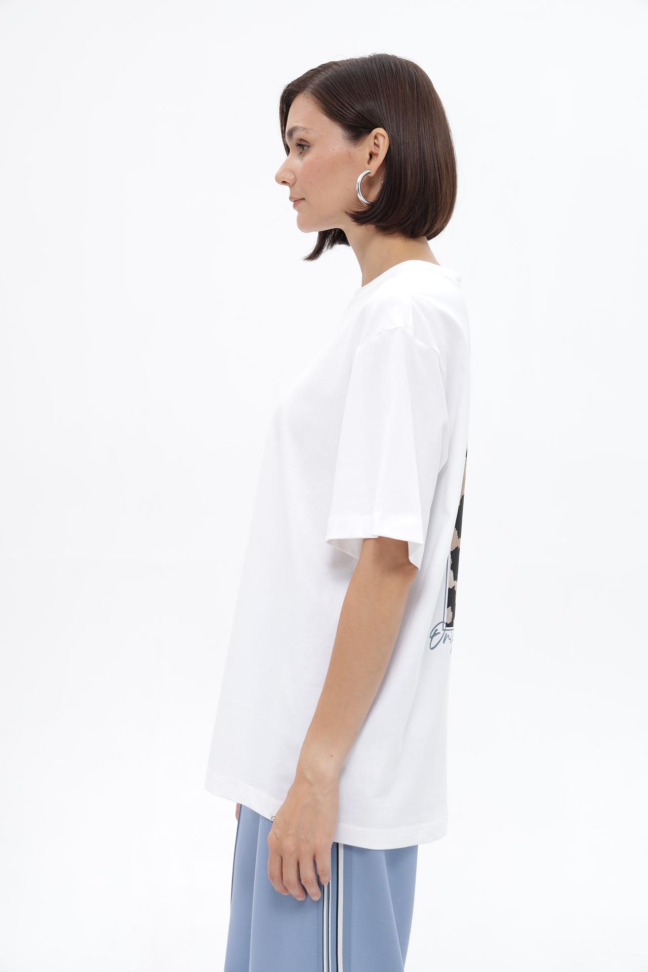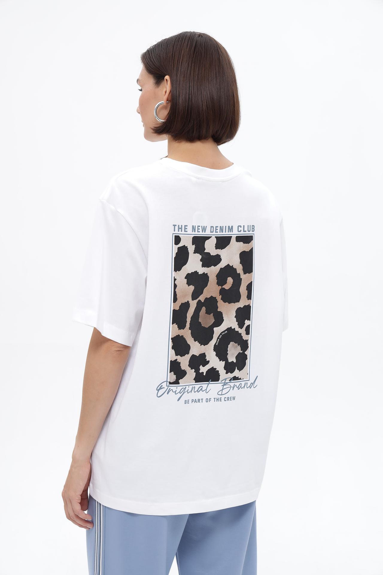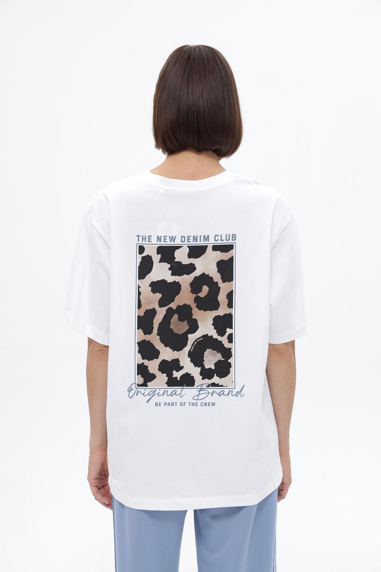 - Дизайн: Классический крой с короткими рукавами и круглым вырезом горловины. На груди расположен лаконичный логотип бренда, а на спине – яркий леопардовый принт с тематическими надписями.