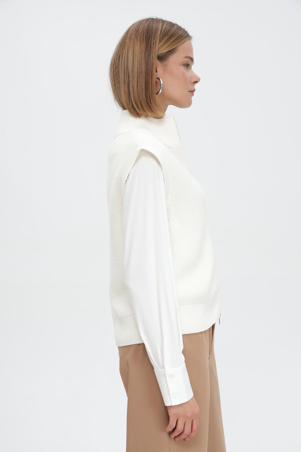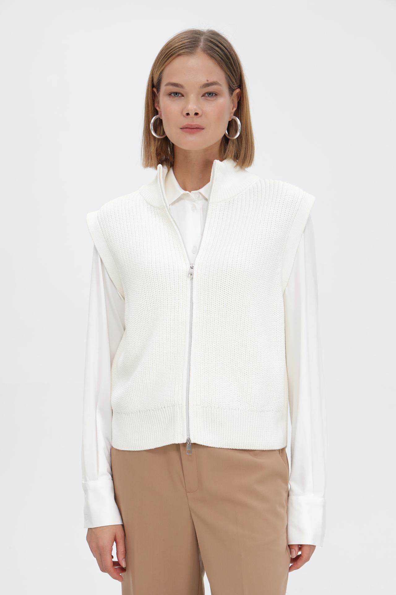 - Цвет: Элегантный белый цвет жилета легко впишется в любую цветовую гамму вашего гардероба, придавая образу свежесть и изысканность.