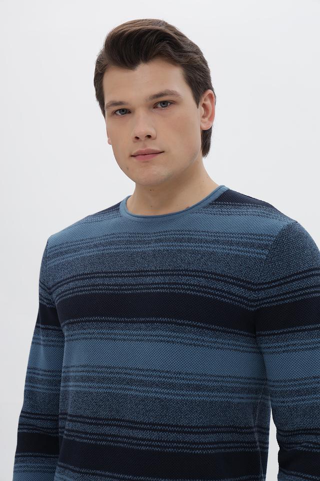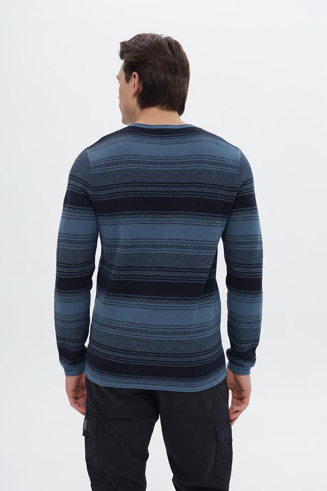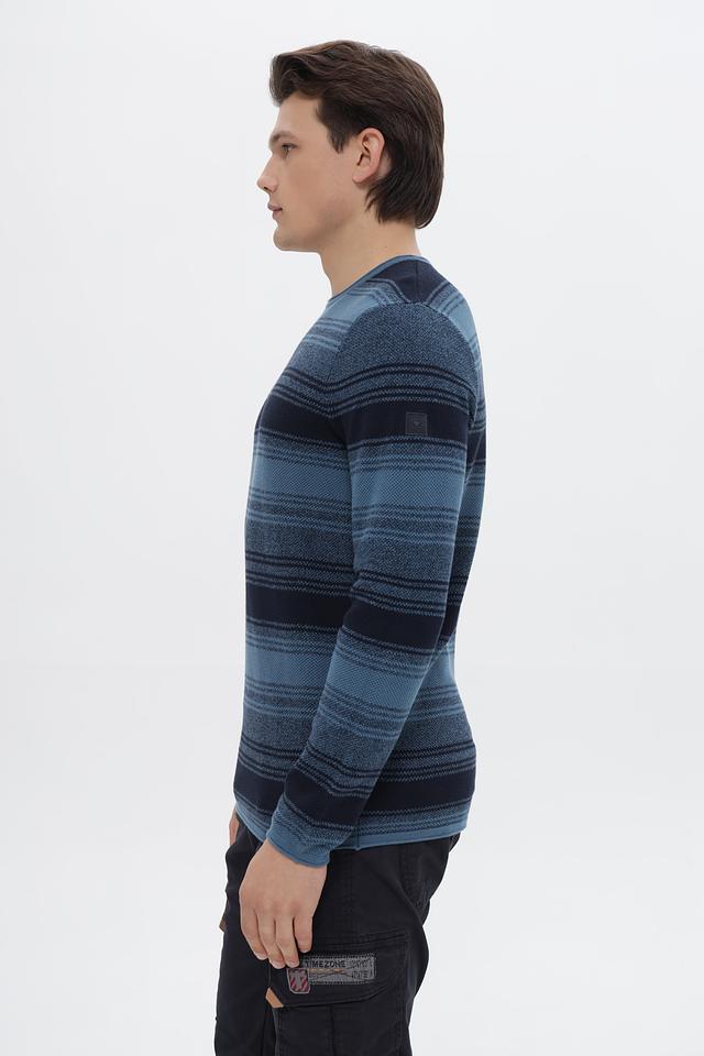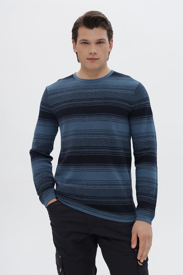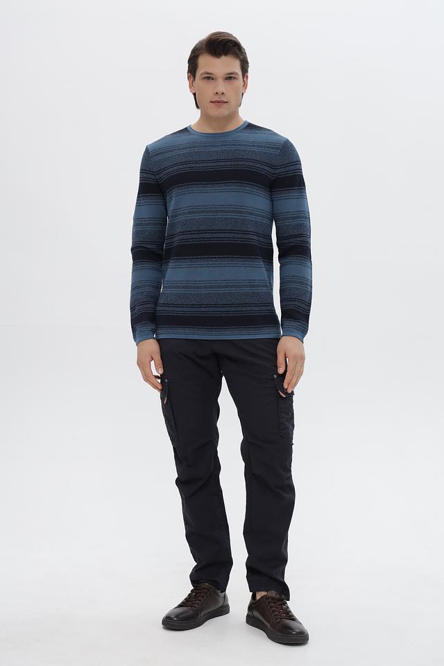 Этот стильный джемпер от Tom Tailor выполнен в классическом крое и украшен горизонтальными полосами синих и тёмно-синих оттенков. Модель имеет круглый вырез горловины и длинные рукава, что делает её универсальной для различных образов.