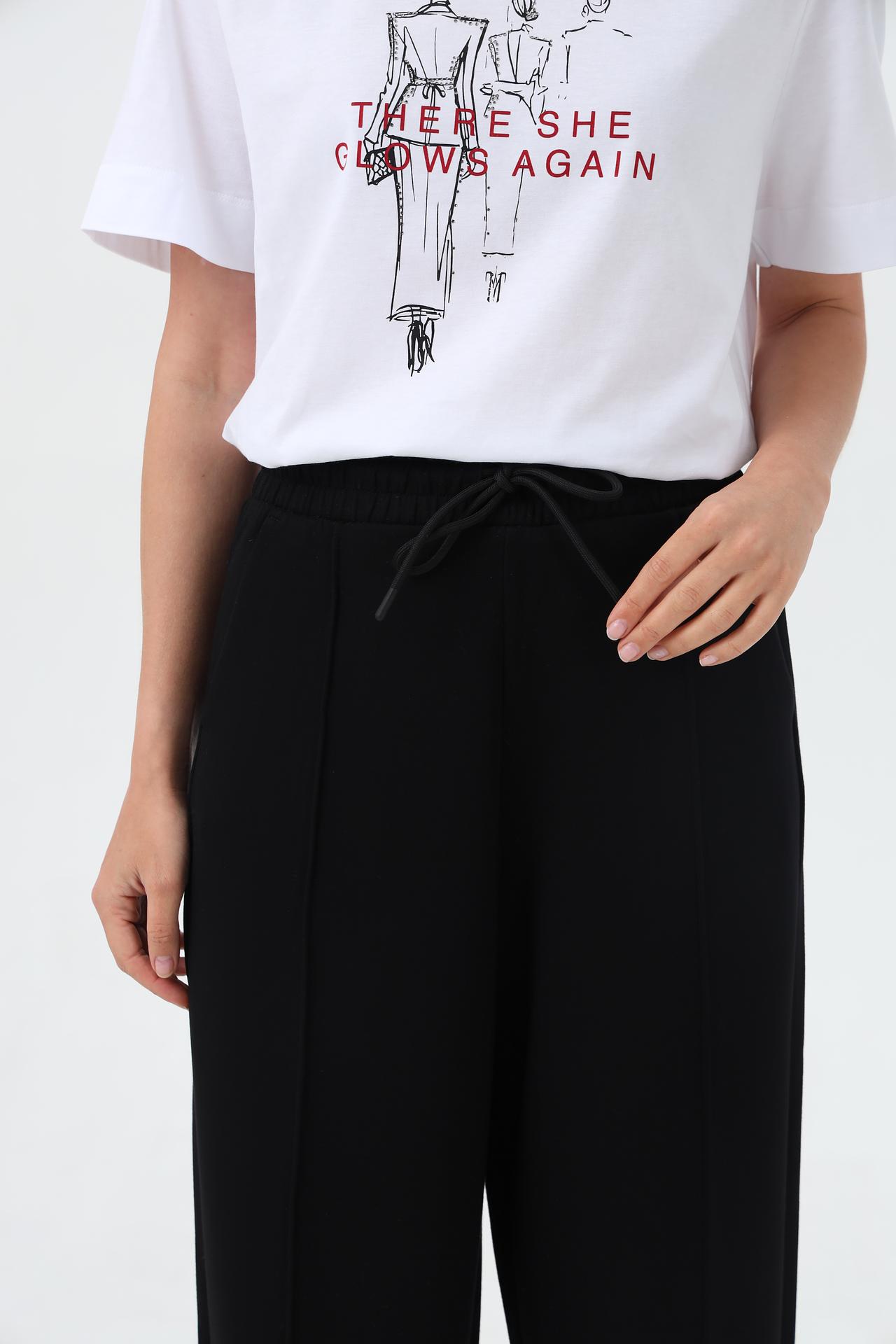 - Универсальность: Черный цвет и классический фасон брюк позволяют комбинировать их с блузками, рубашками, топами и пиджаками, создавая разнообразные луки для любого случая.