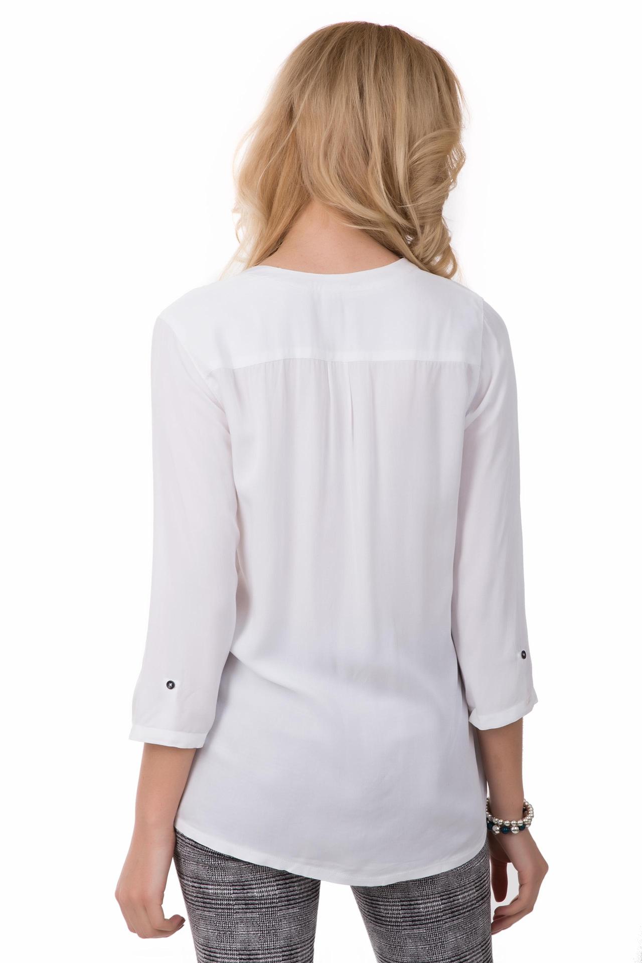 Блузa Tom Tailor белая. Прекрасная стильная блуза. Если вы романтичны и любите белый цвет, то эта модель именно для вас. Блуза свободного кроя, с рукавом три четверти, сзади – кокетка с маленькими защипами по центру. Декоративная деталь - небольшой карманчик на груди, который придает модели некий шарм. Рукава отделаны манжетами с изящными черными пуговицами. Состав:100%-ная вискоза. Вы можете носить эту блузу с брюками, юбками, в ней вы всегда будете выглядеть модно.