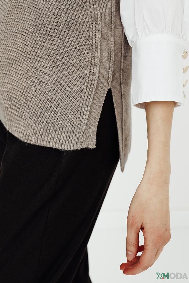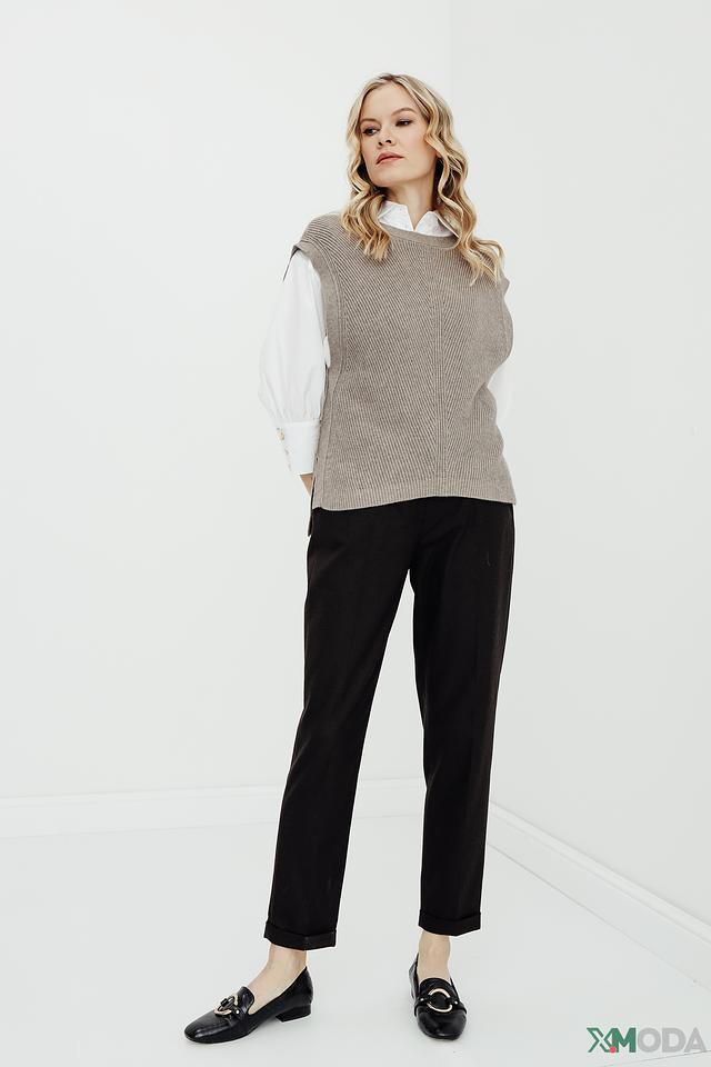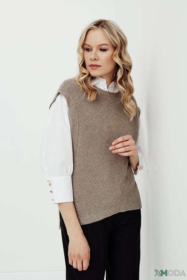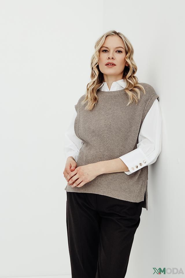 Особый акцент – вязаная текстура и боковые разрезы, добавляющие образу динамичности и современности. Этот жилет идеально подойдет для создания стильных и комфортных образов на каждый день.