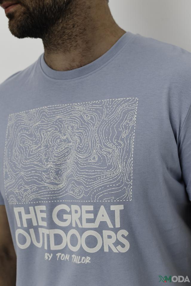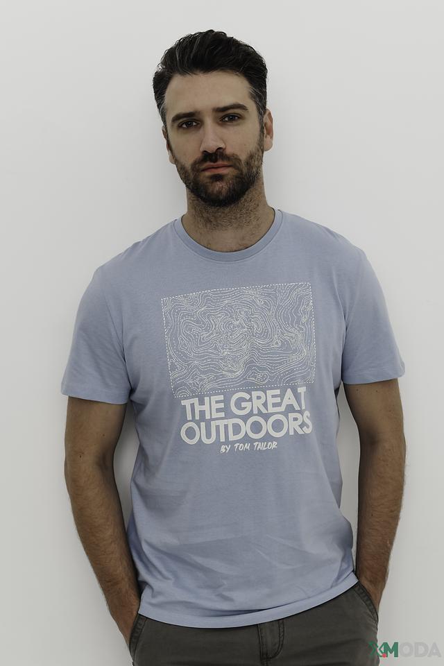 Голубая футболка Tom Tailor с оригинальным принтом "The Great Outdoors" станет отличным дополнением к вашему гардеробу. Изготовлена из 100% хлопка, обеспечивая комфорт и воздухопроницаемость. Состав: хлопок 100%