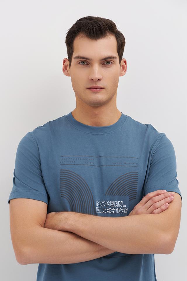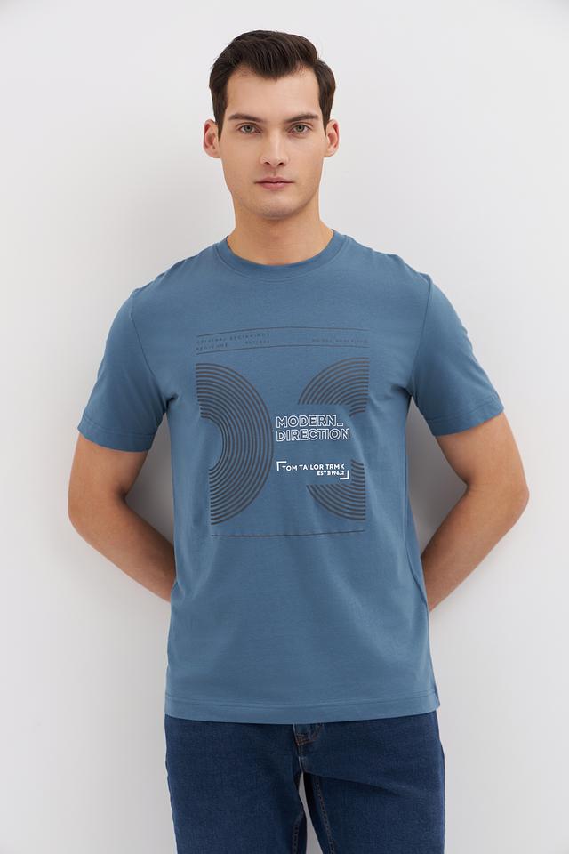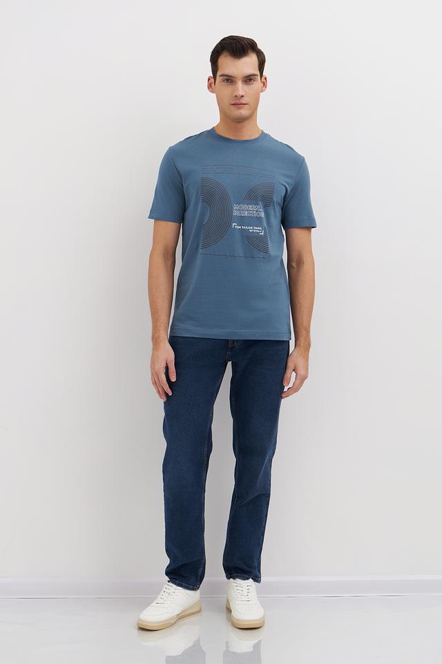 Мужская футболка Tom Tailor голубого цвета с оригинальным графическим принтом. Изготовлена из 100% хлопка, обеспечивающего комфорт и воздухопроницаемость. Стильный и удобный выбор для повседневной носки. Состав: хлопок 100%