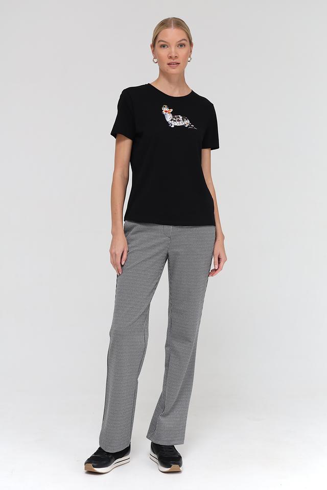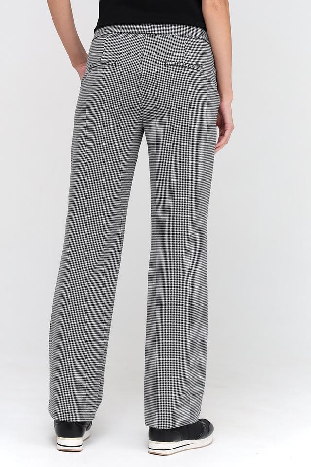 Женские брюки Toni collection чёрно-белого цвета с классическим клетчатым принтом. Модель выполнена из смесовой ткани с добавлением эластана для комфортной посадки и свободы движений. Состав: полиэстер 60%, полиамид 20%, метализ.нить 15%, эластан 5%