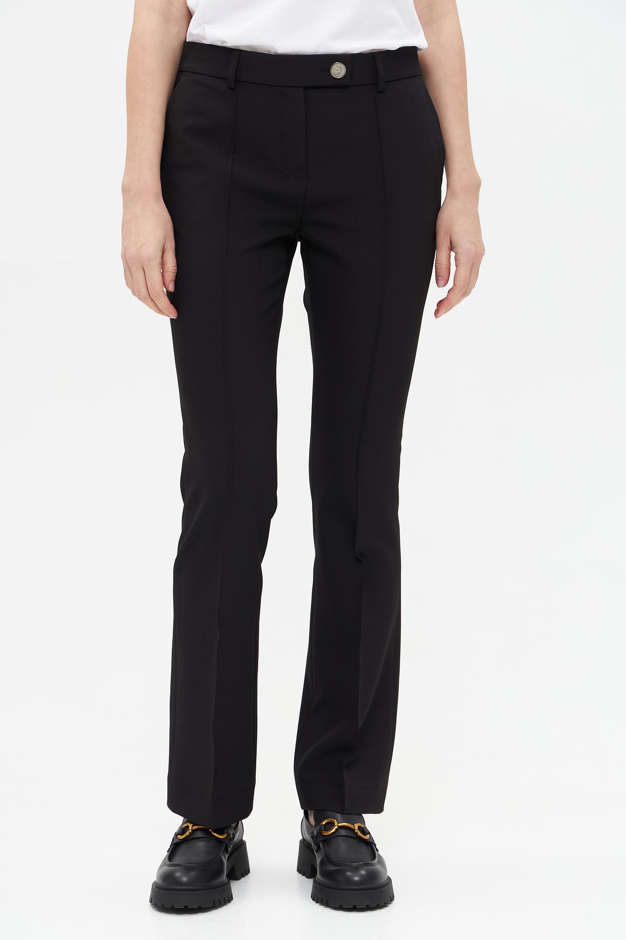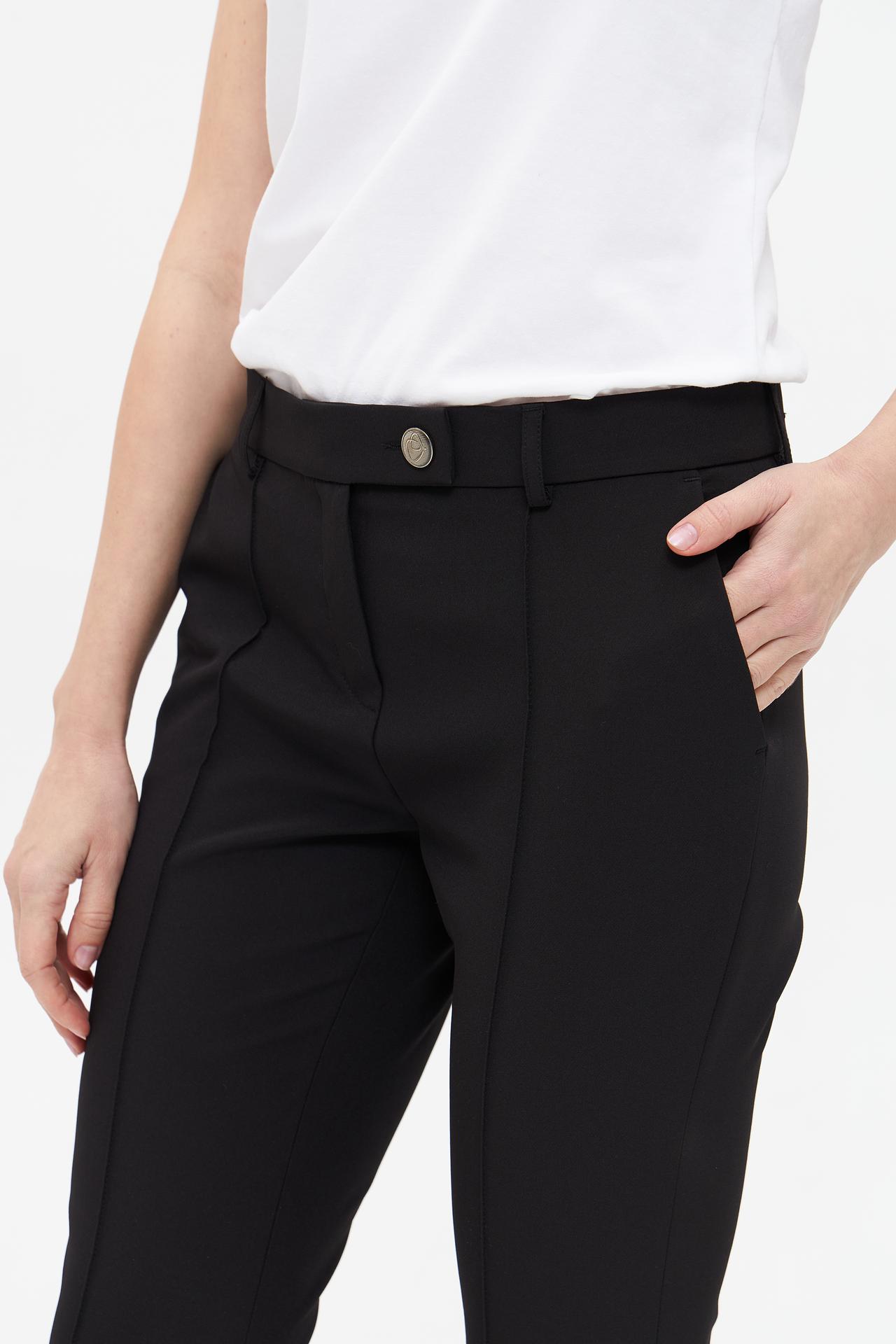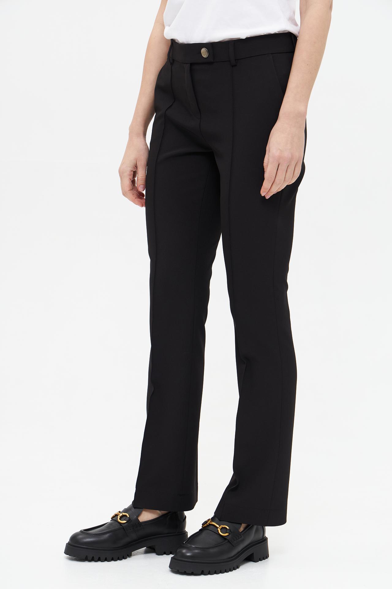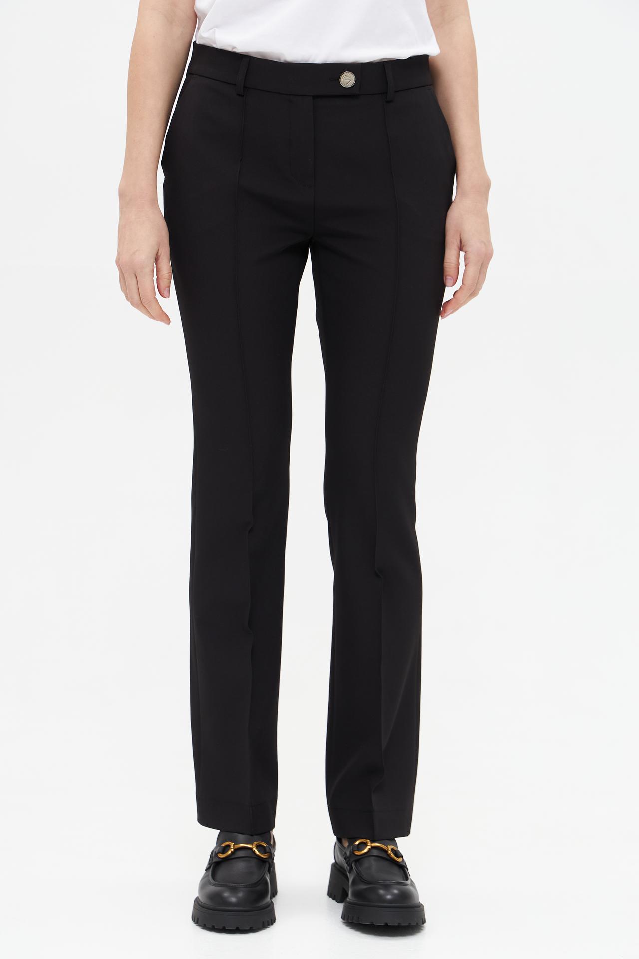- Дизайн: Прямой крой брюк выгодно подчеркивает достоинства фигуры, а декоративные швы добавляют изысканности. Модель дополнена застежкой на молнию и пуговицу, а также функциональными карманами.