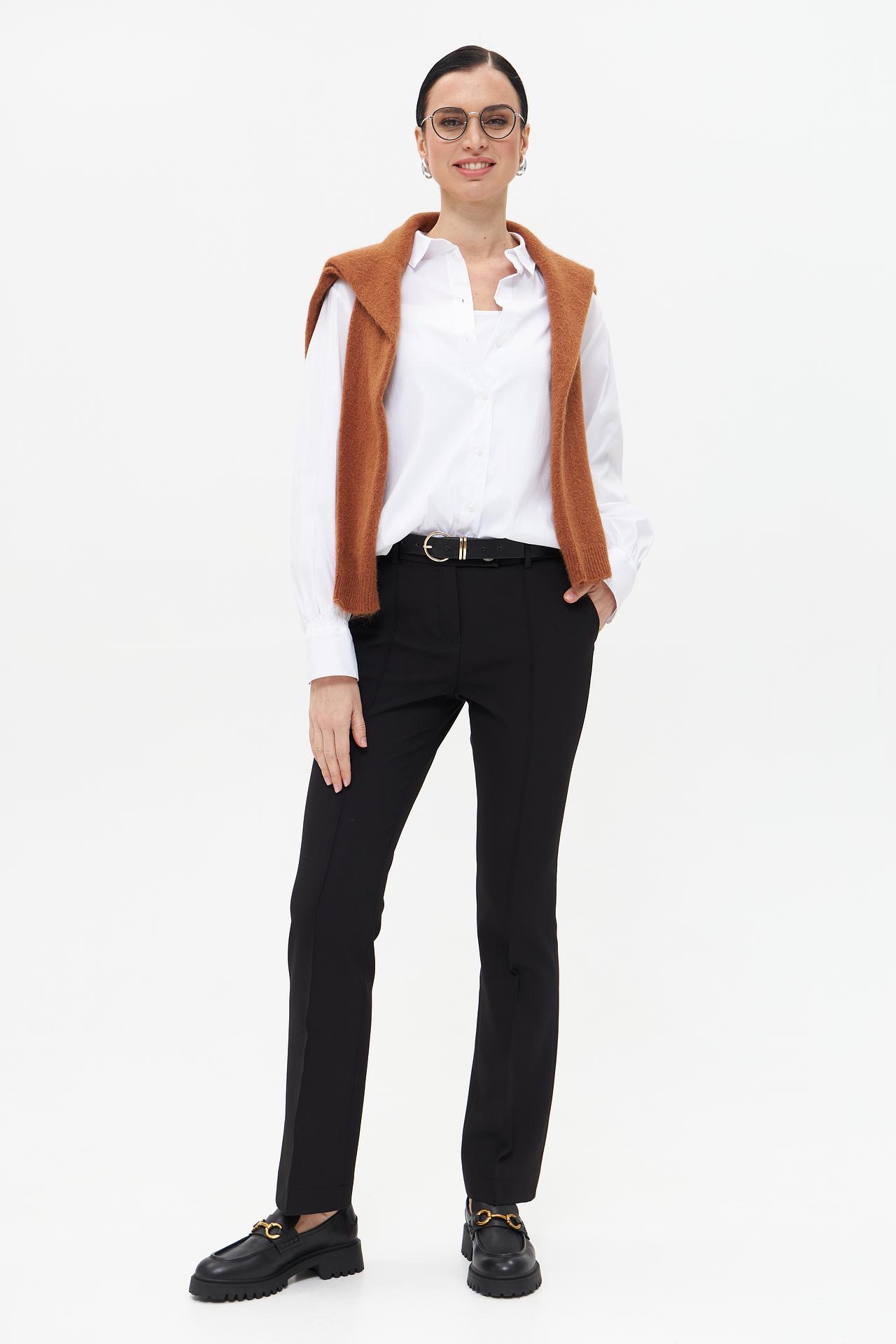 - Универсальность: Брюки легко сочетаются с различной одеждой, от деловых блуз до повседневных футболок, создавая стильные комплекты для любого случая. Идеально подходят для офиса, деловых встреч и повседневного ношения.
