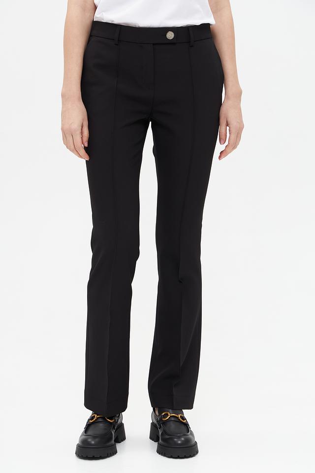 Изготовленные из полиэстера с добавлением эластана, брюки приятны на ощупь, хорошо держат форму и практически не мнутся. Эластан обеспечивает свободу движений и комфорт в носке. Данная модель идеально подойдет для создания деловых и повседневных образов.