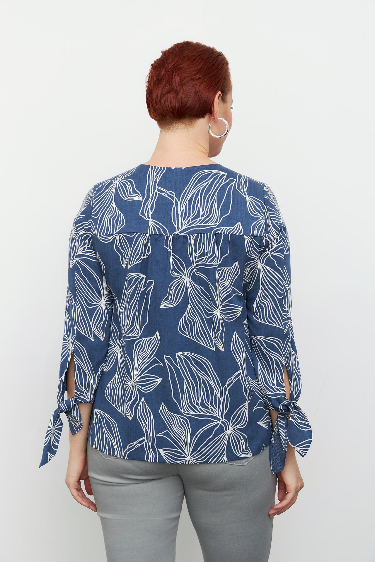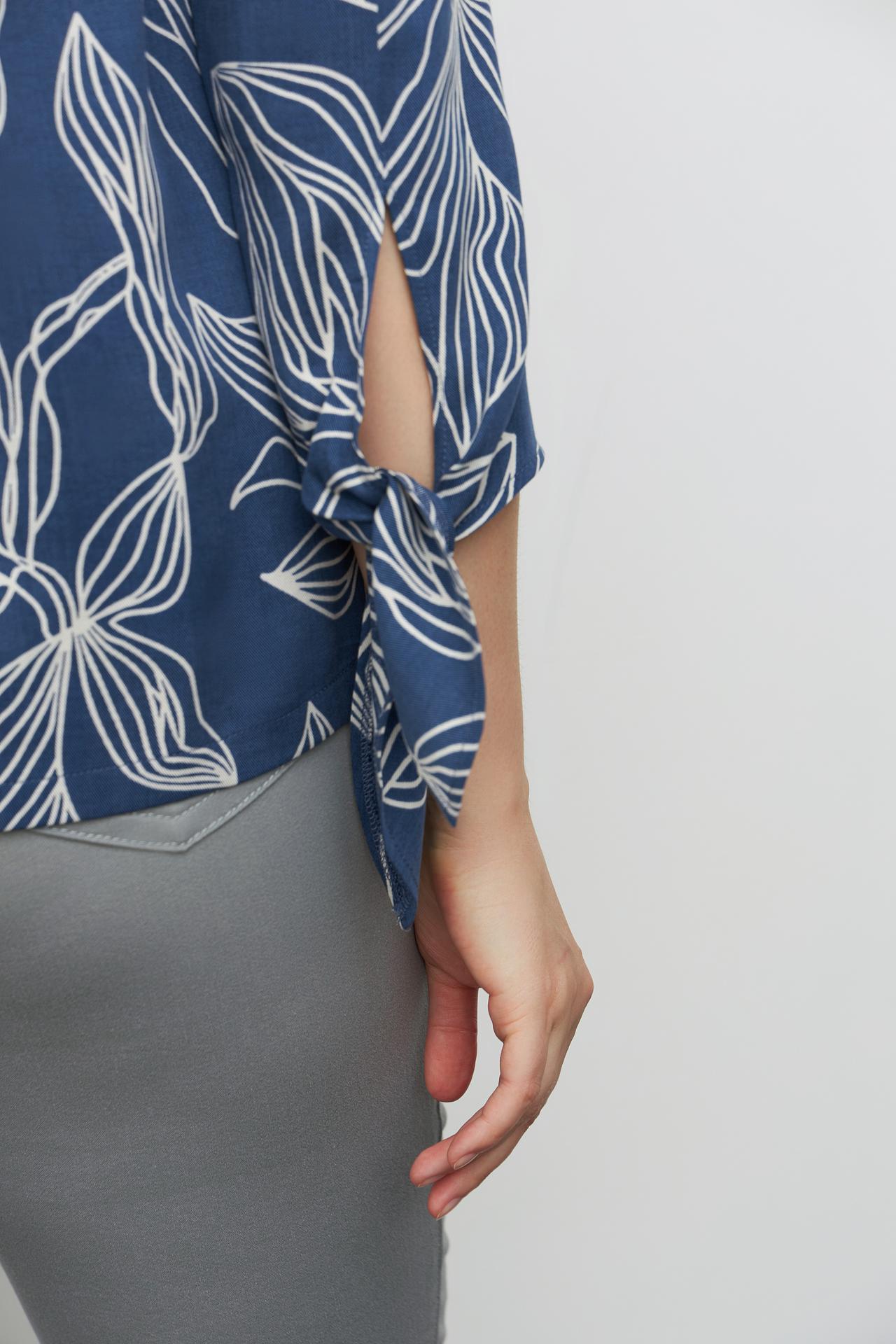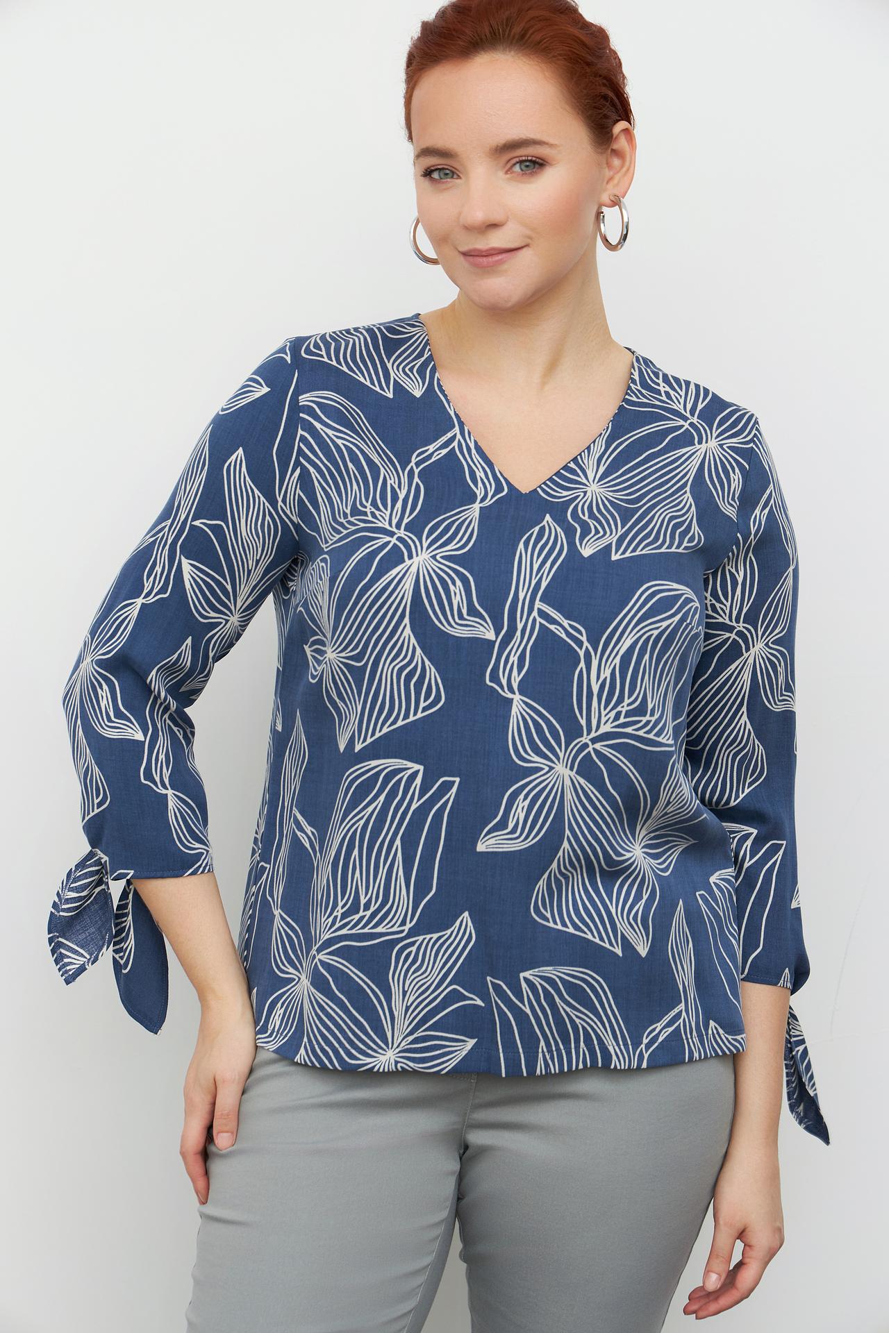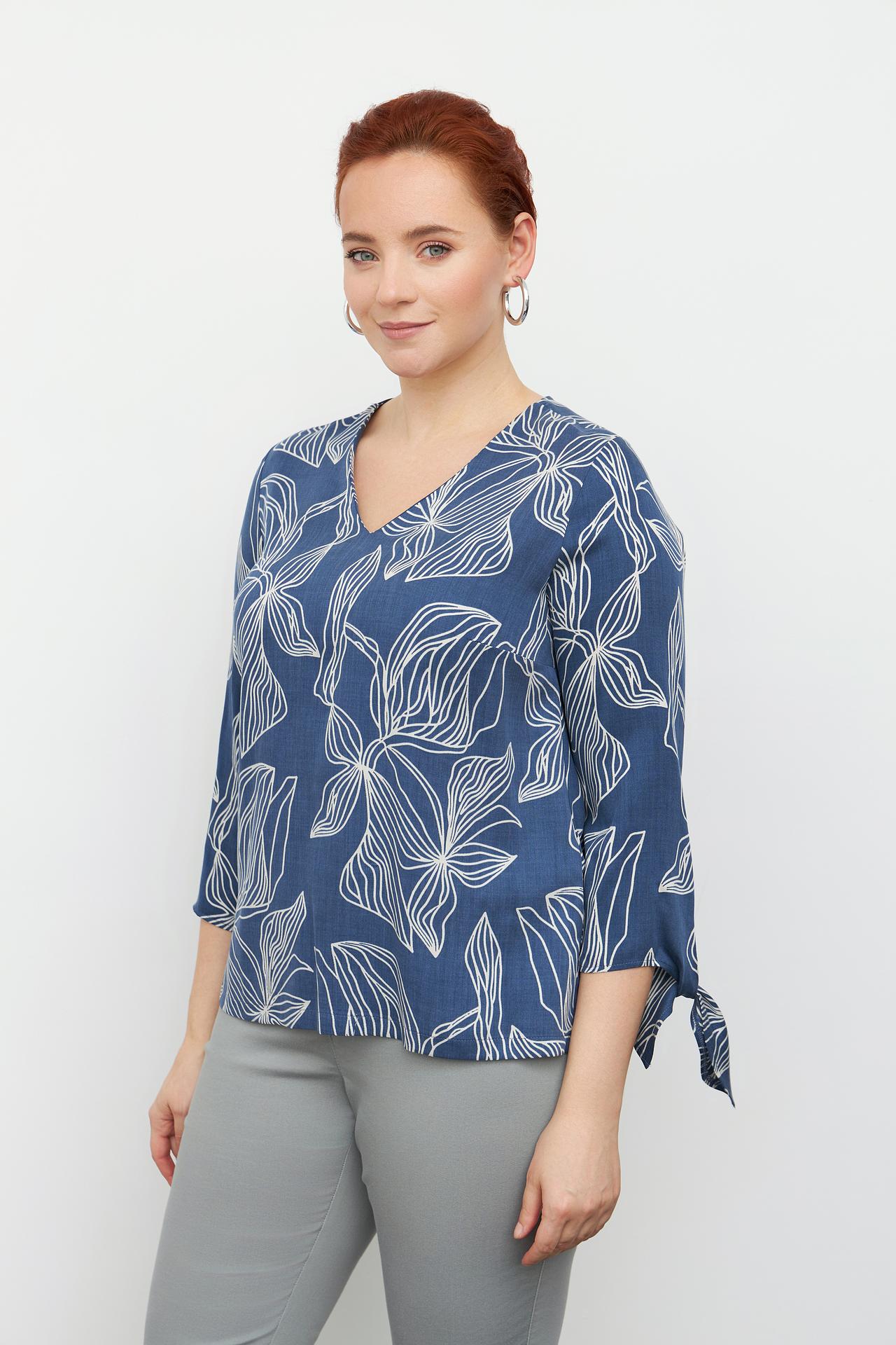 Блуза выполнена в насыщенном синем цвете с ярким цветочным принтом. Невероятно мягкий и приятный на ощупь материал обеспечит максимальный комфорт при носке.